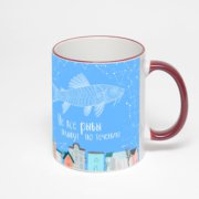 Кружка с бордовой ручкой и ободком «Зодиак - Рыбы»