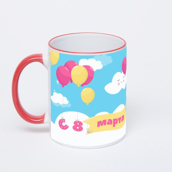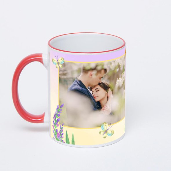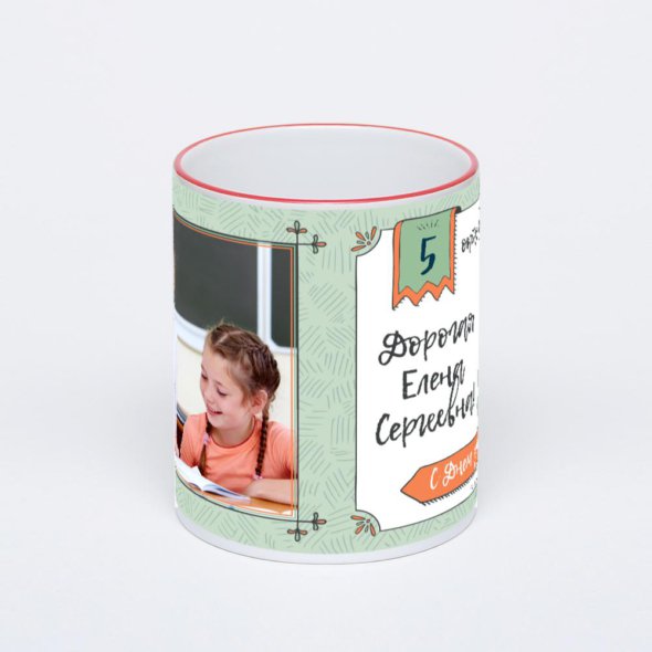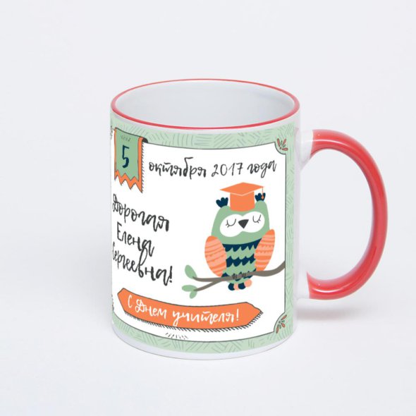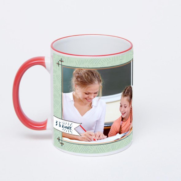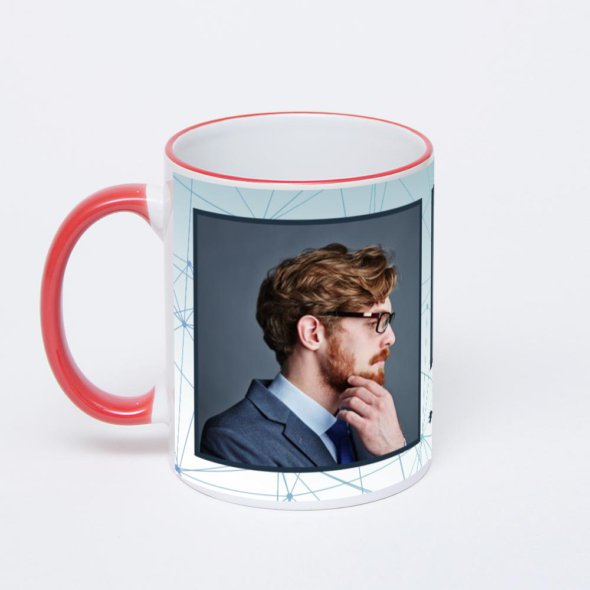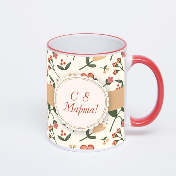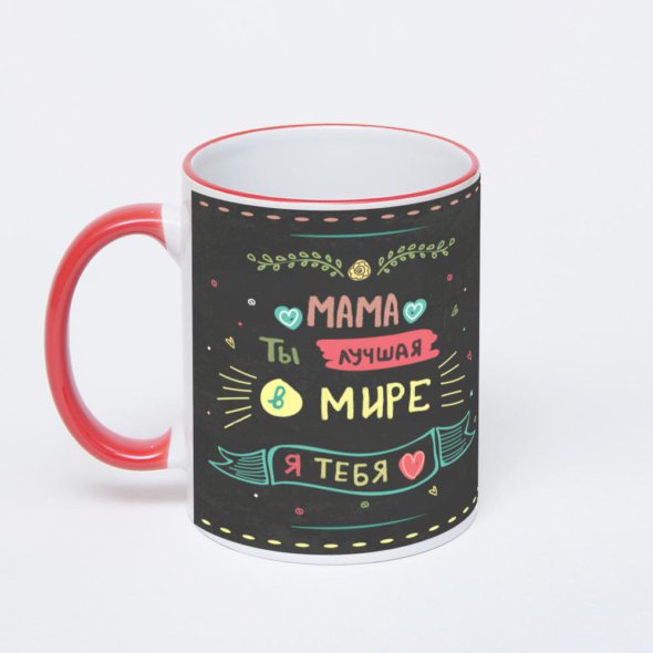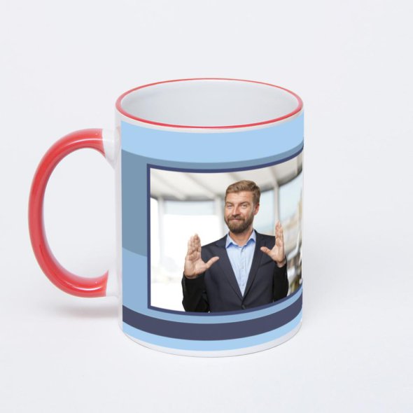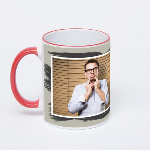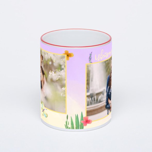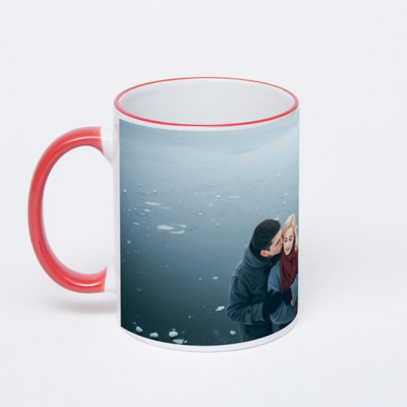 Керамическая кружка с красной ручкой и ободком с нанесением изображения. Кружка с вашим изображением – это уникальный и качественный подарок. Создать её вы можете прямо сейчас в редакторе, добавляя фотографии, стикеры и надписи.
