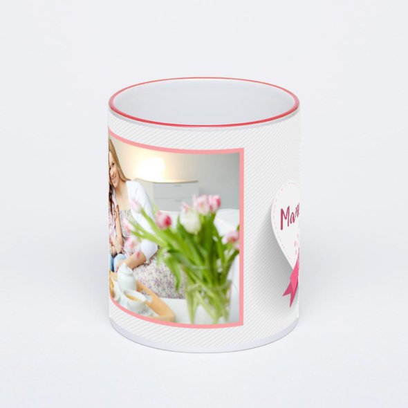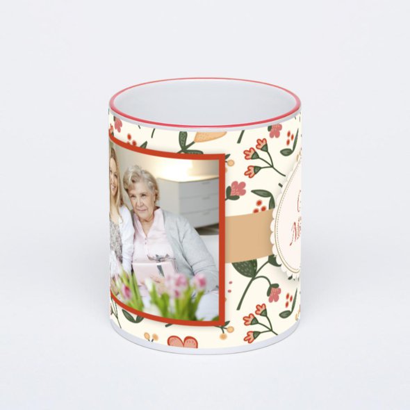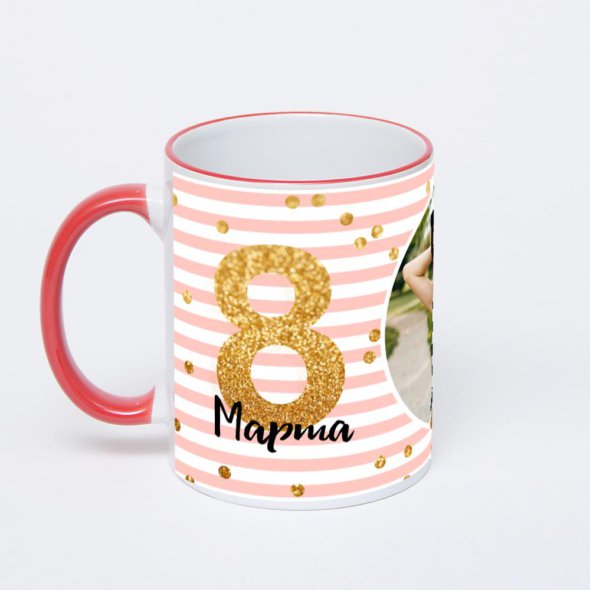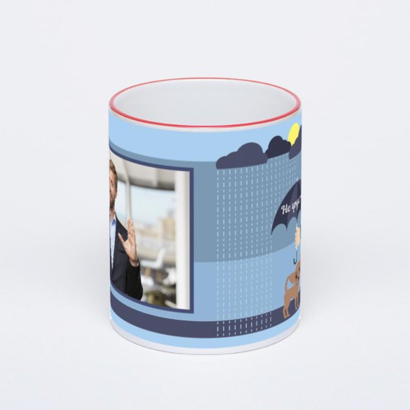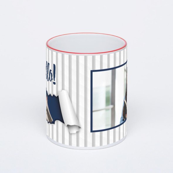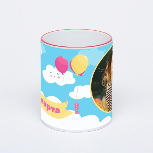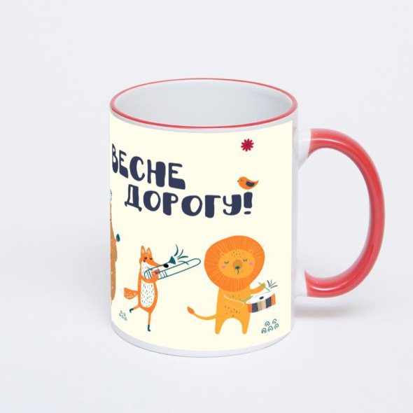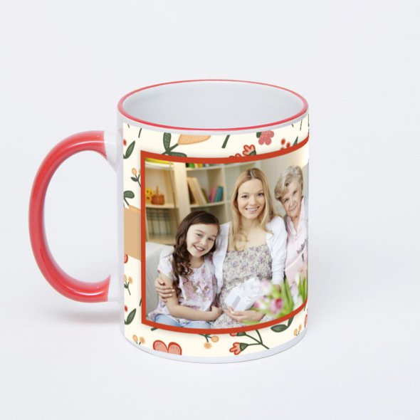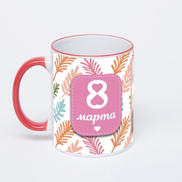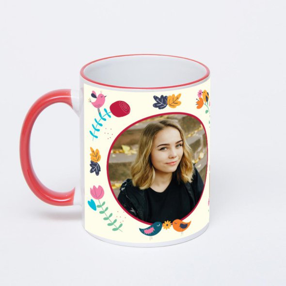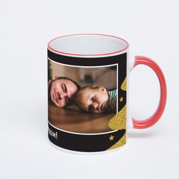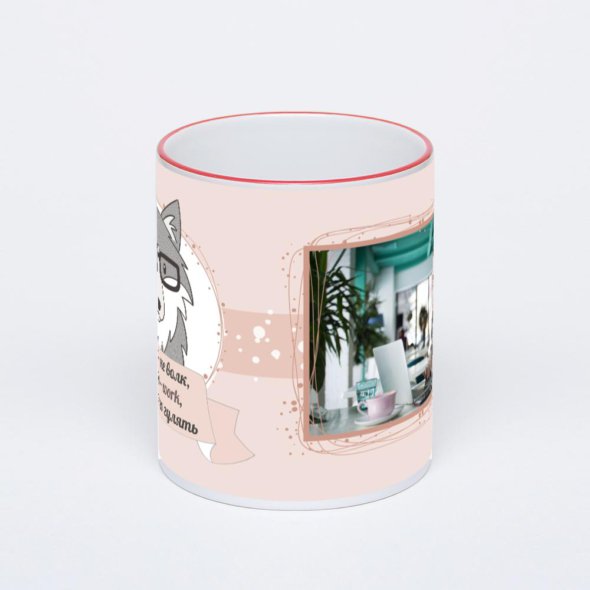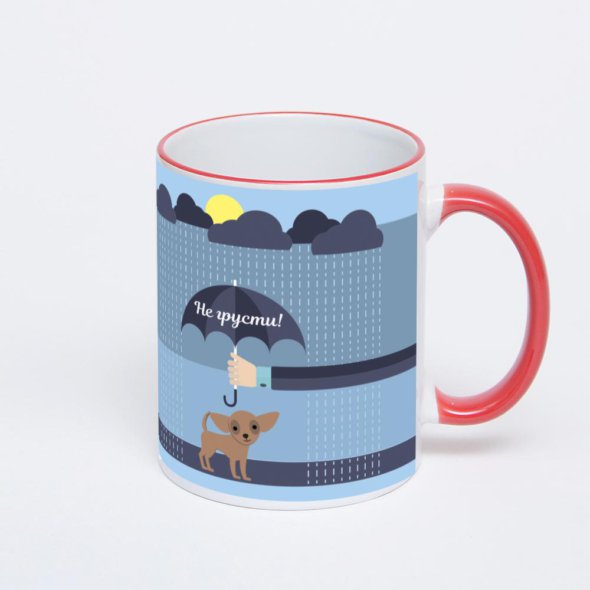 Керамическая кружка с красной ручкой и ободком с нанесением изображения. Кружка с вашим изображением – это уникальный и качественный подарок. Создать её вы можете прямо сейчас в редакторе, добавляя фотографии, стикеры и надписи.