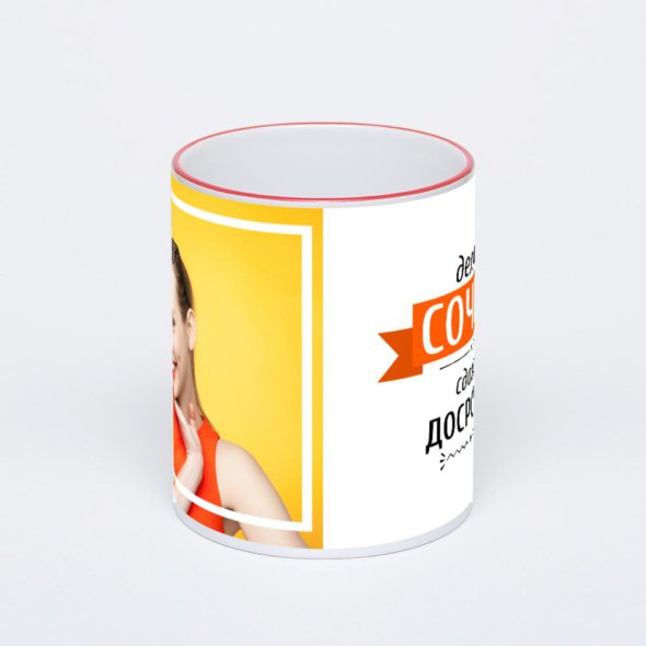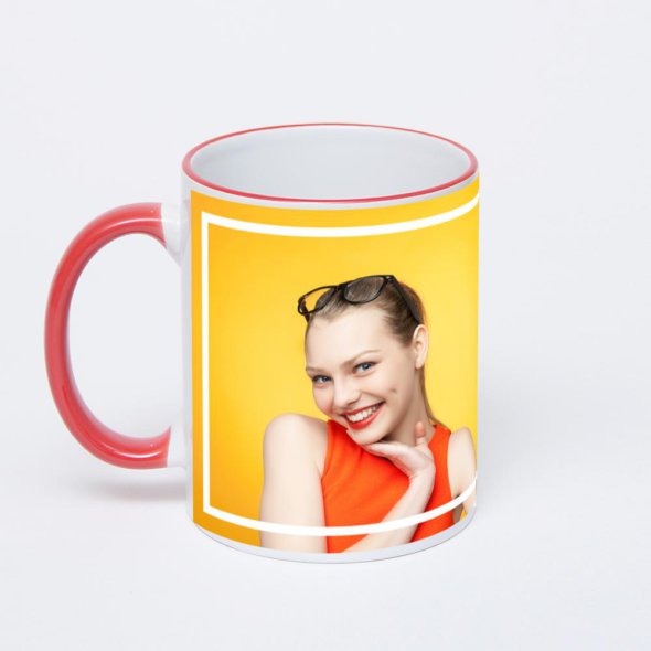 Керамическая кружка с красной ручкой и ободком с нанесением изображения. Кружка с вашим изображением – это уникальный и качественный подарок. Создать её вы можете прямо сейчас в редакторе, добавляя фотографии, стикеры и надписи.