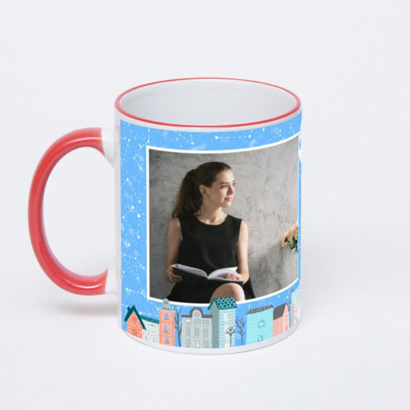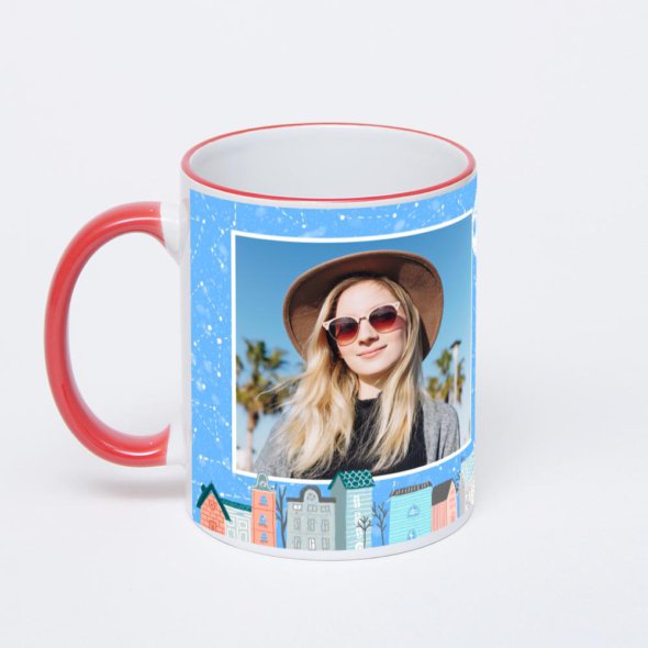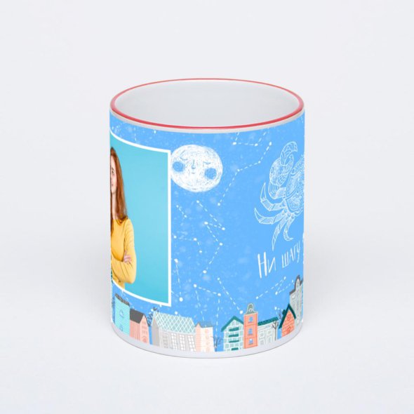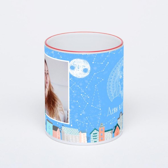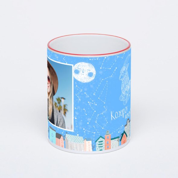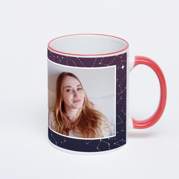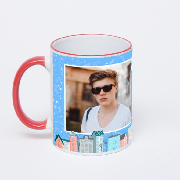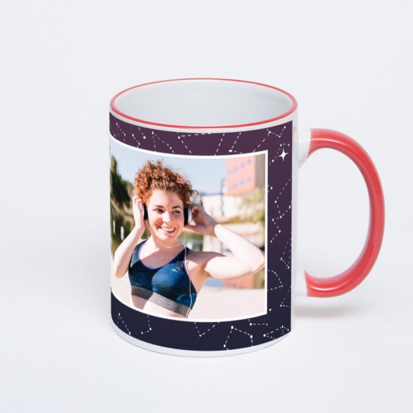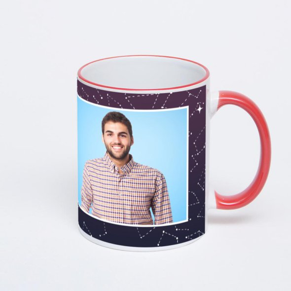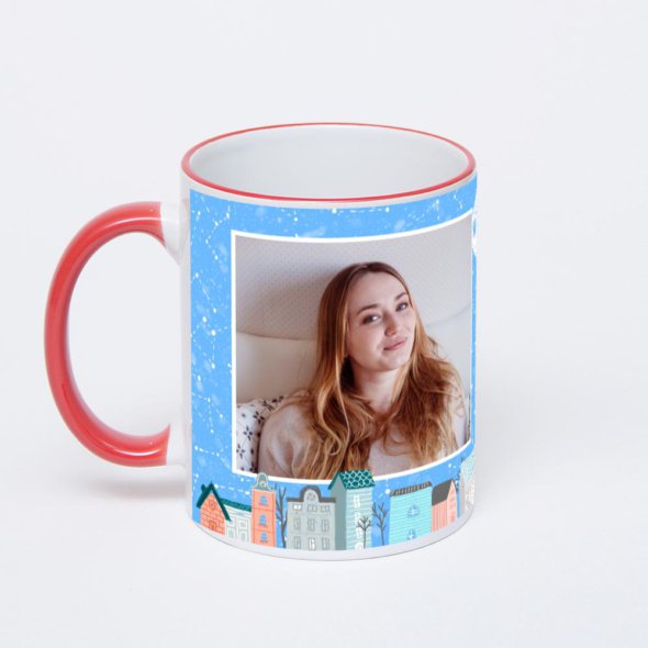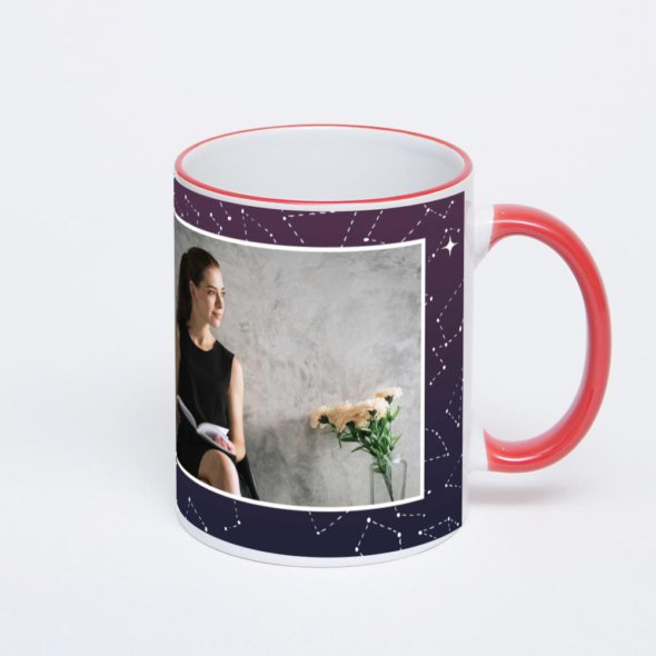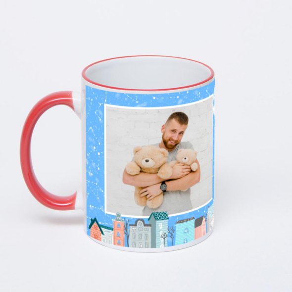Керамическая кружка с красной ручкой и ободком с нанесением изображения. Кружка с вашим изображением – это уникальный и качественный подарок. Создать её вы можете прямо сейчас в редакторе, добавляя фотографии, стикеры и надписи.