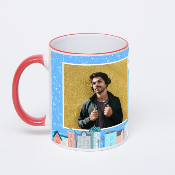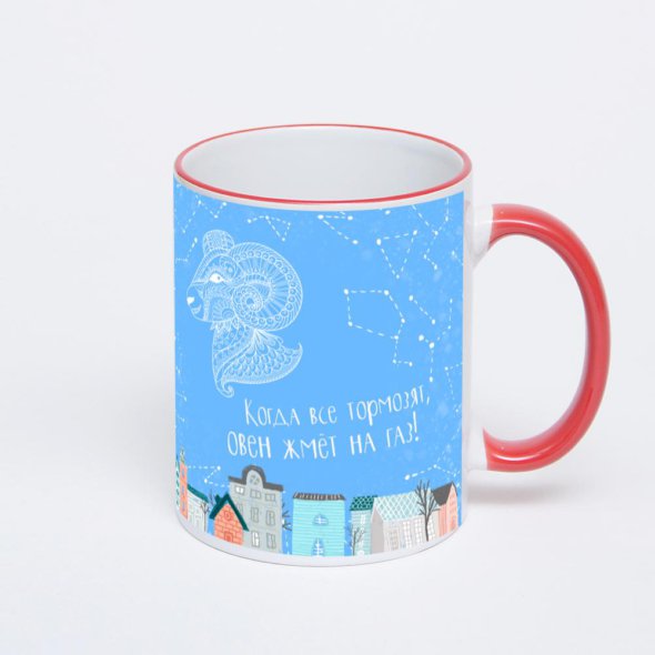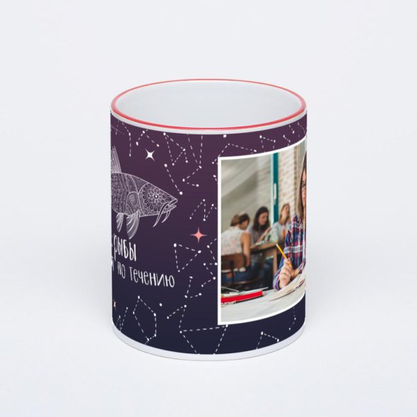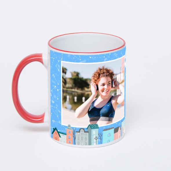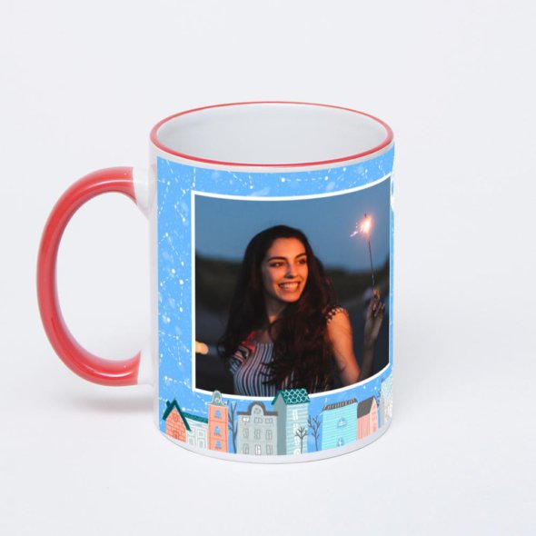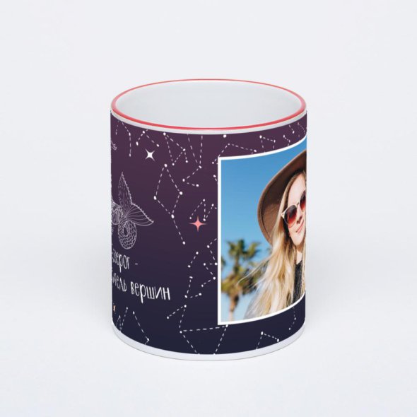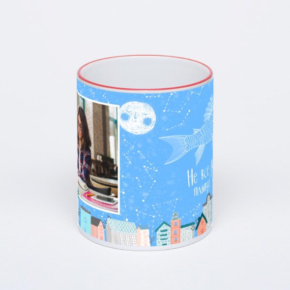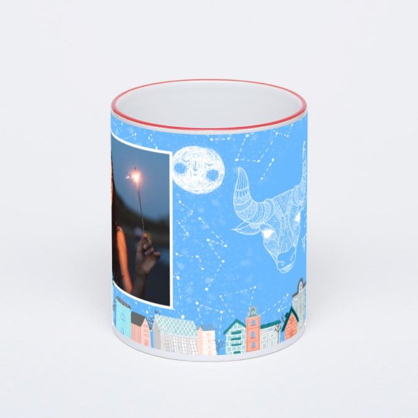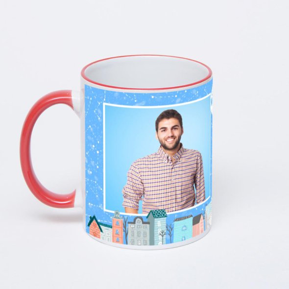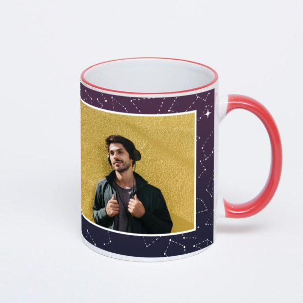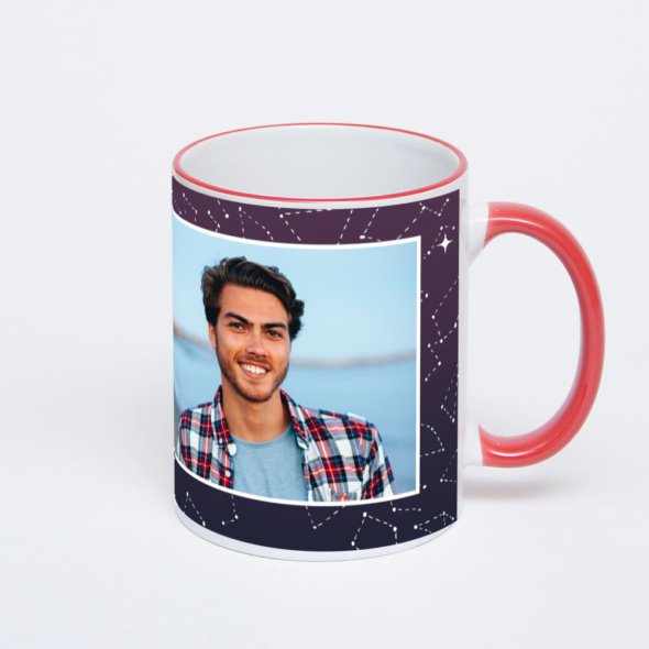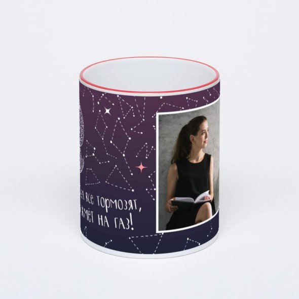 Керамическая кружка с красной ручкой и ободком с нанесением изображения. Кружка с вашим изображением – это уникальный и качественный подарок. Создать её вы можете прямо сейчас в редакторе, добавляя фотографии, стикеры и надписи.