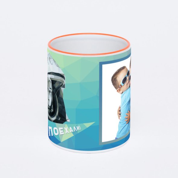 Керамическая кружка с оранжевой ручкой и ободком с нанесением изображения. Кружка с вашим изображением – это уникальный и качественный подарок. Создать её вы можете прямо сейчас в редакторе, добавляя фотографии, стикеры и надписи.