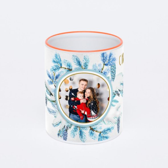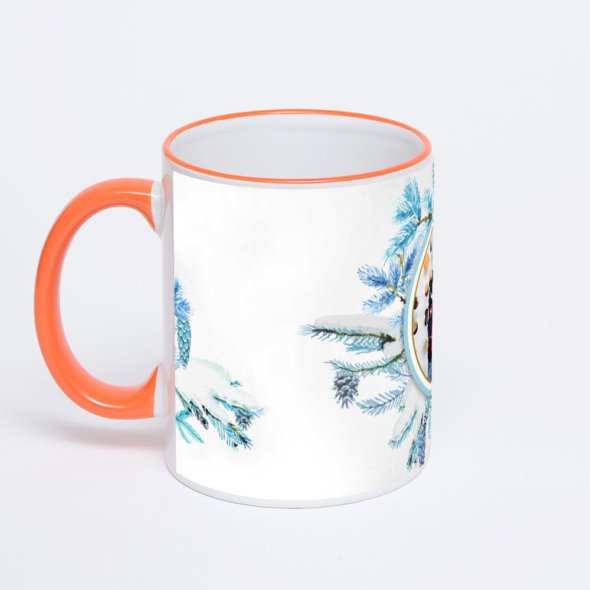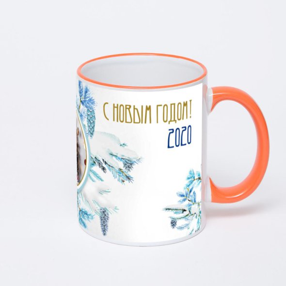 Керамическая кружка с оранжевой ручкой и ободком с нанесением изображения. Кружка с вашим изображением – это уникальный и качественный подарок. Создать её вы можете прямо сейчас в редакторе, добавляя фотографии, стикеры и надписи.