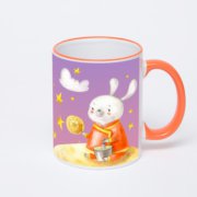 Керамическая кружка с оранжевой ручкой и ободком с нанесением изображения. Срок печати на кружке – 2 часа.