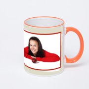 Керамическая кружка с оранжевой ручкой и ободком с нанесением изображения. Кружка с вашим изображением – это уникальный и качественный подарок. Создать её вы можете прямо сейчас в редакторе, добавляя фотографии, стикеры и надписи.