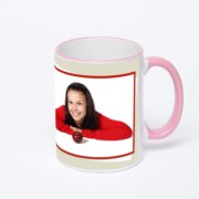 Керамическая кружка с оранжевой ручкой и ободком с нанесением изображения. Срок печати на кружке – 2 часа.