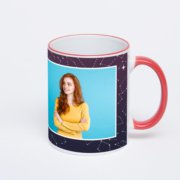 Керамическая кружка с оранжевой ручкой и ободком с нанесением изображения. Кружка с вашим изображением – это уникальный и качественный подарок. Создать её вы можете прямо сейчас в редакторе, добавляя фотографии, стикеры и надписи.