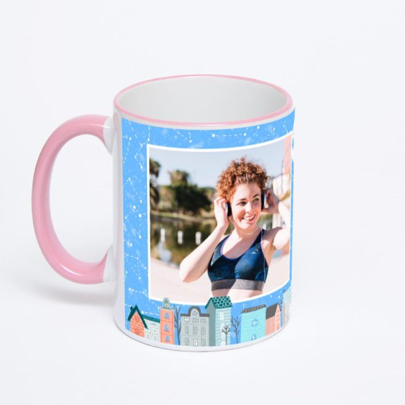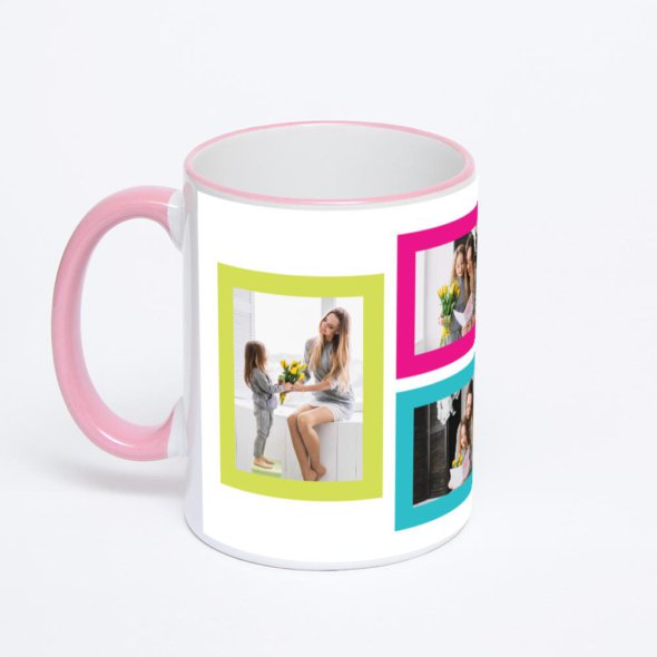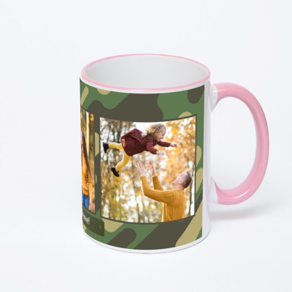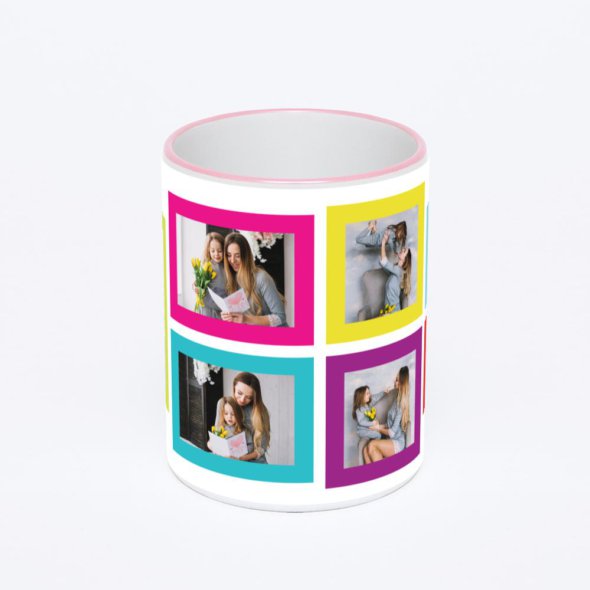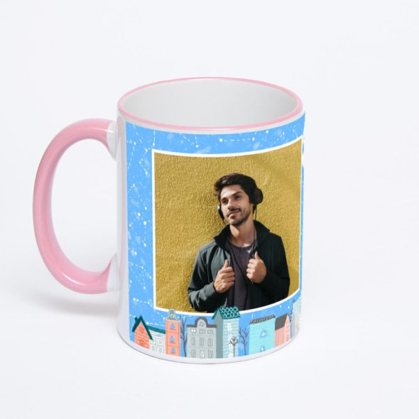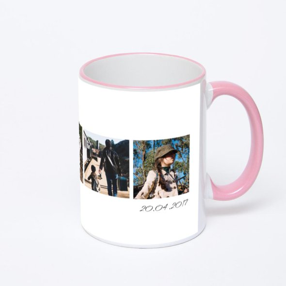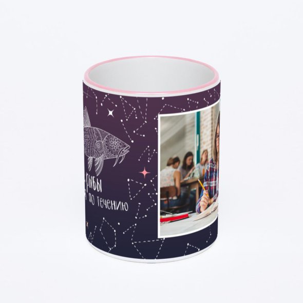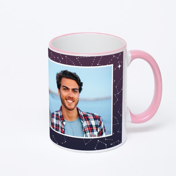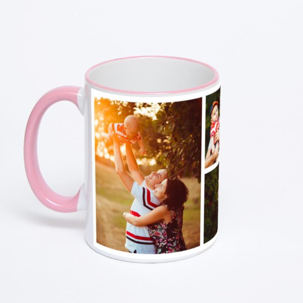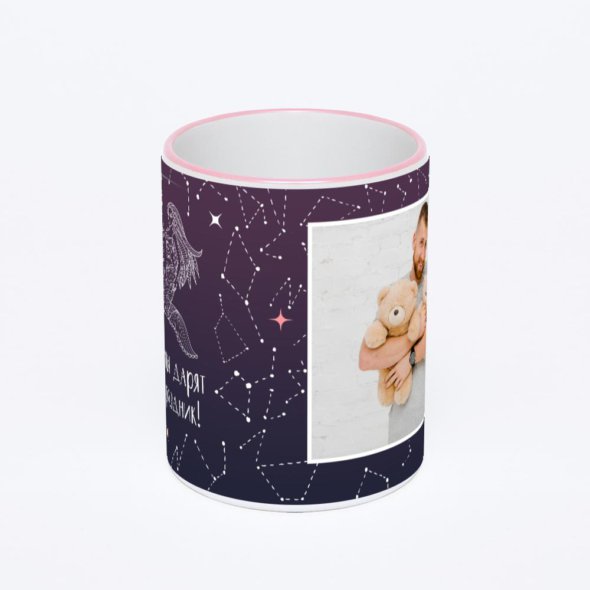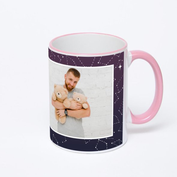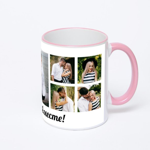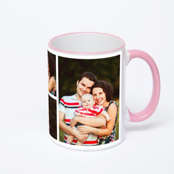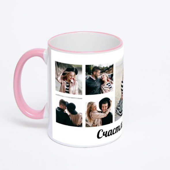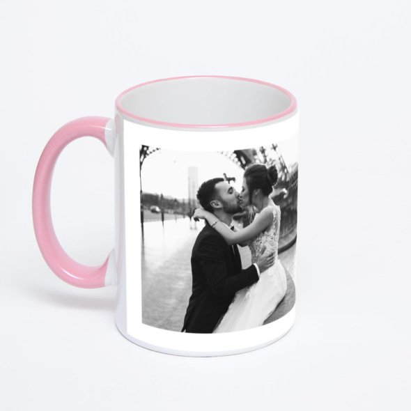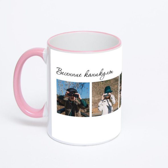 Керамическая кружка с розовой ручкой и ободком с нанесением изображения. Кружка с вашим изображением – это уникальный и качественный подарок. Создать её вы можете прямо сейчас в редакторе, добавляя фотографии, стикеры и надписи.