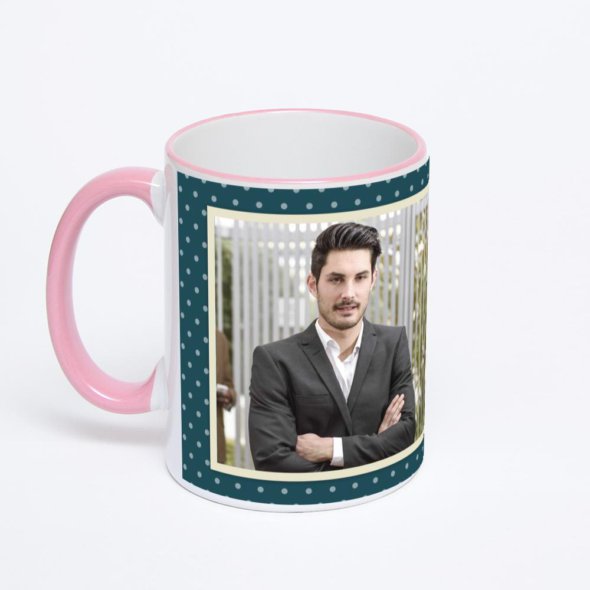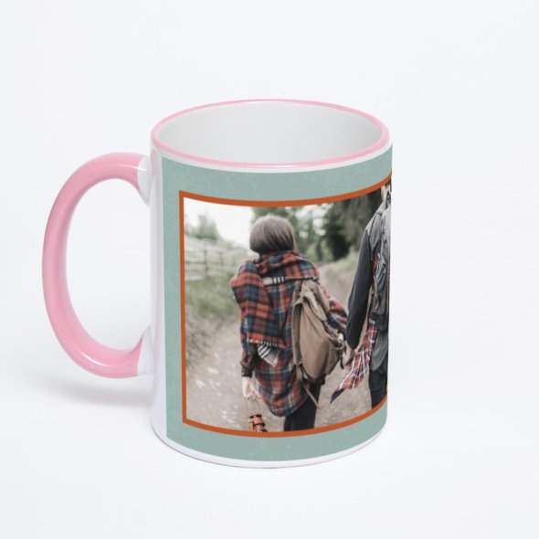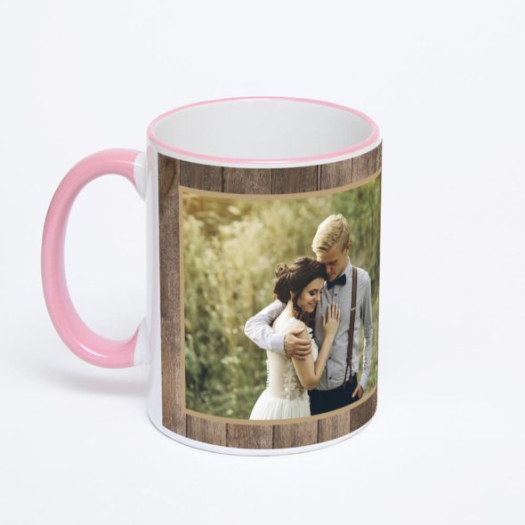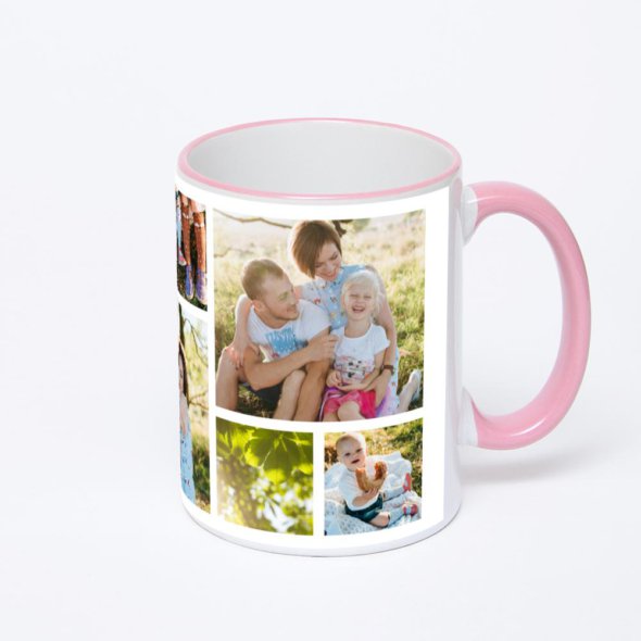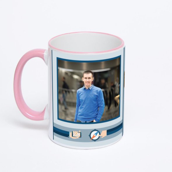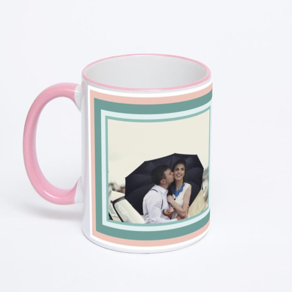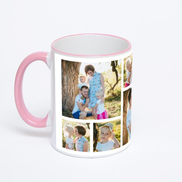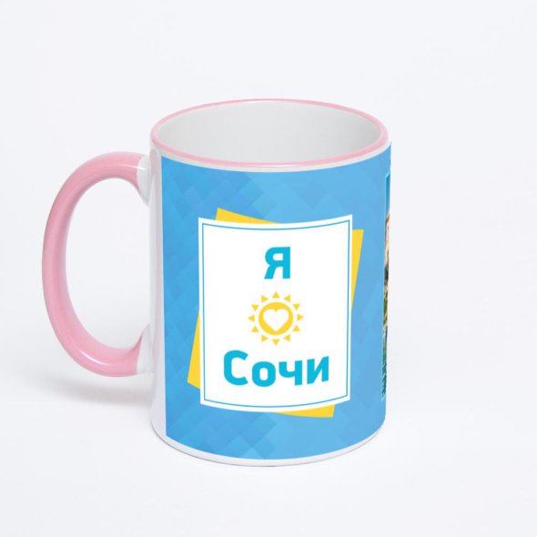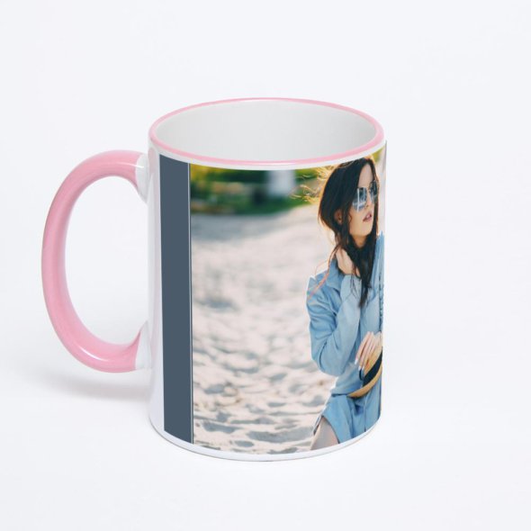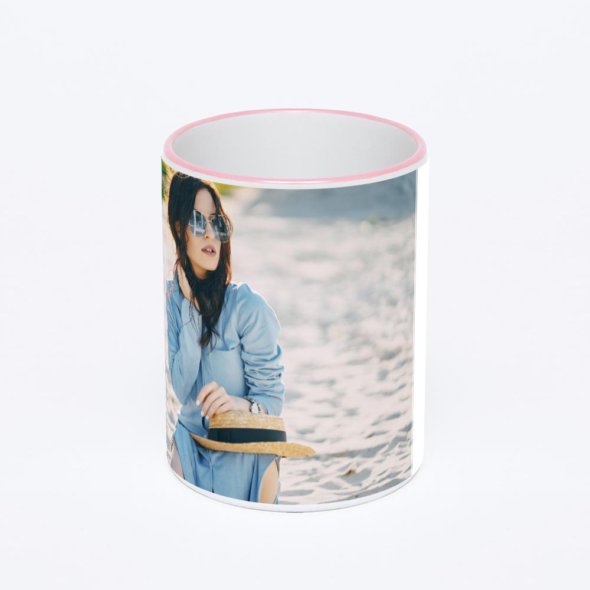 Керамическая кружка с розовой ручкой и ободком с нанесением изображения. Кружка с вашим изображением – это уникальный и качественный подарок. Создать её вы можете прямо сейчас в редакторе, добавляя фотографии, стикеры и надписи.