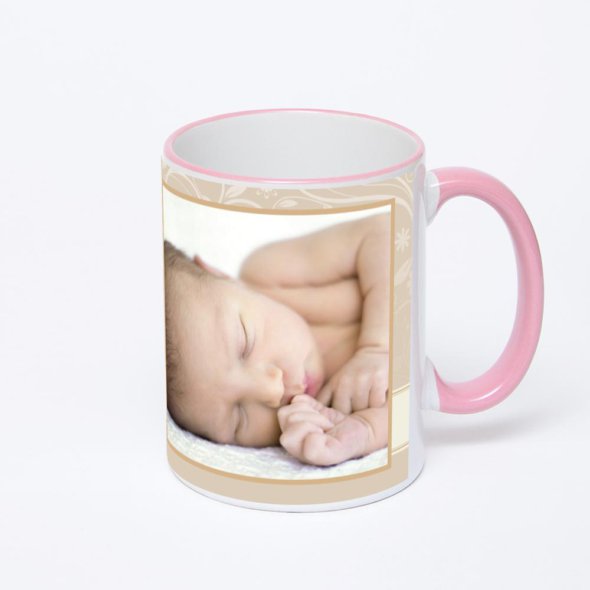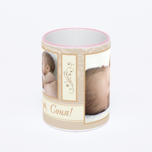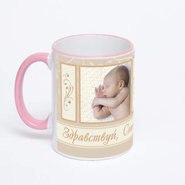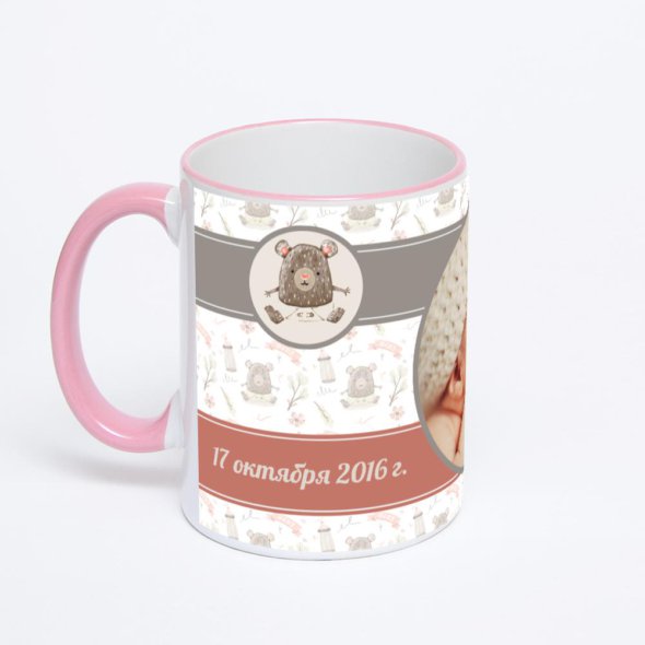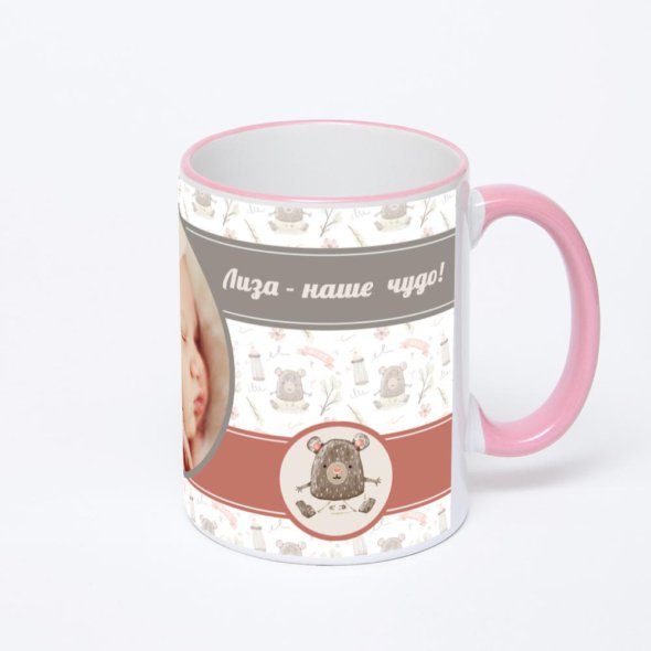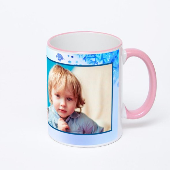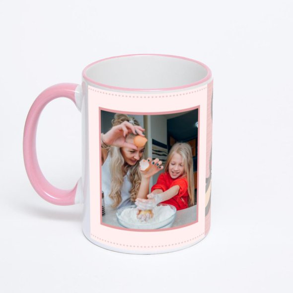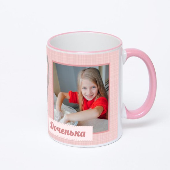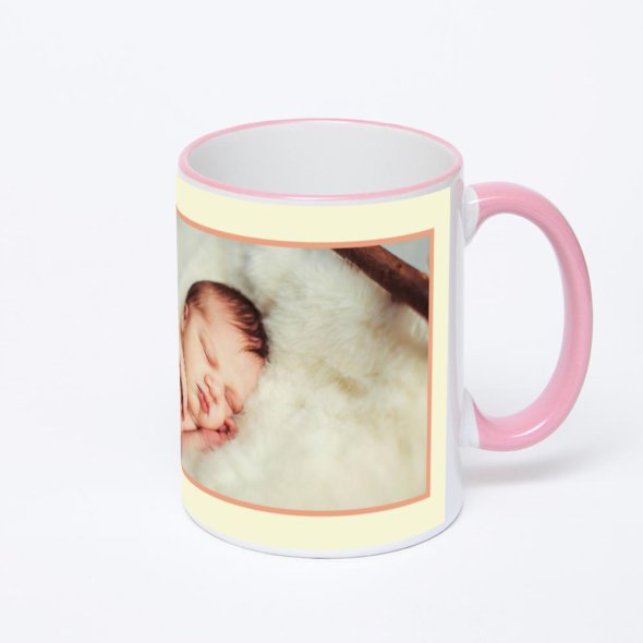 Керамическая кружка с розовой ручкой и ободком с нанесением изображения. Кружка с вашим изображением – это уникальный и качественный подарок. Создать её вы можете прямо сейчас в редакторе, добавляя фотографии, стикеры и надписи.