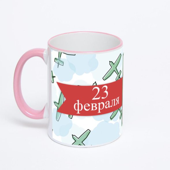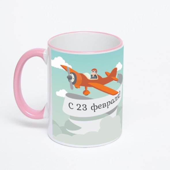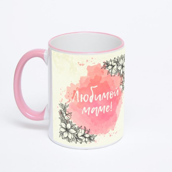 Кружка с розовой ручкой и ободком