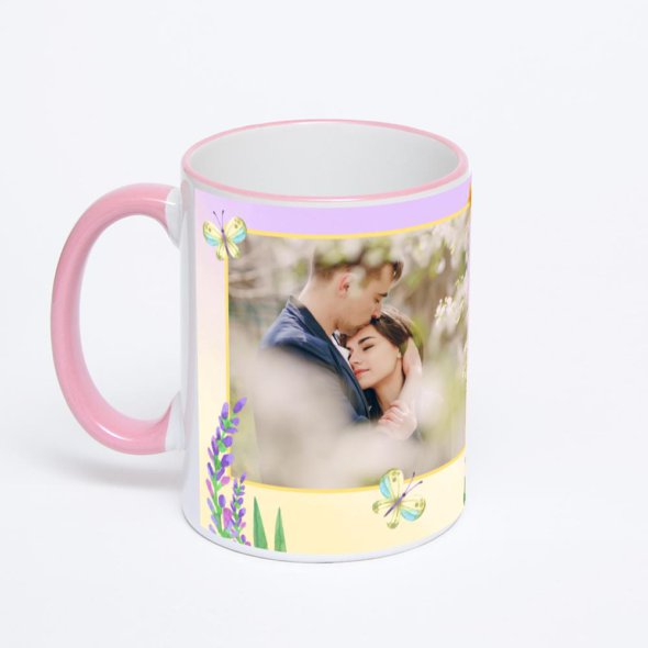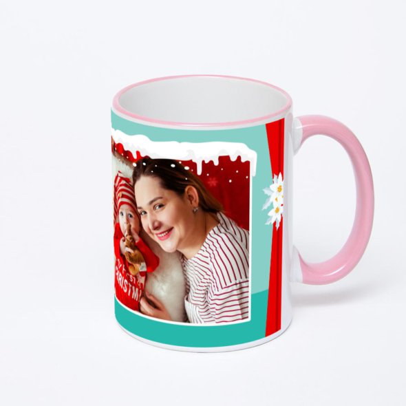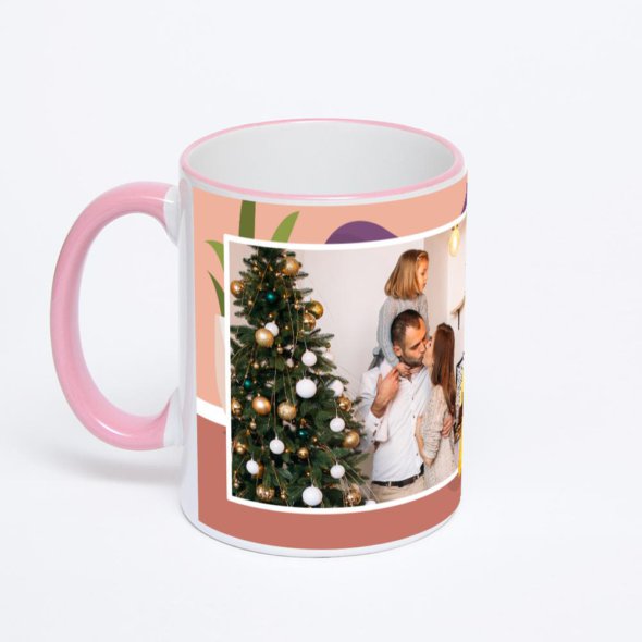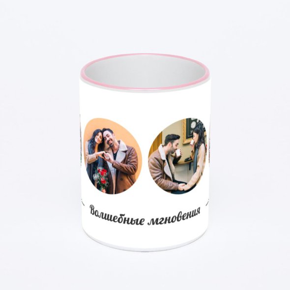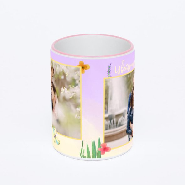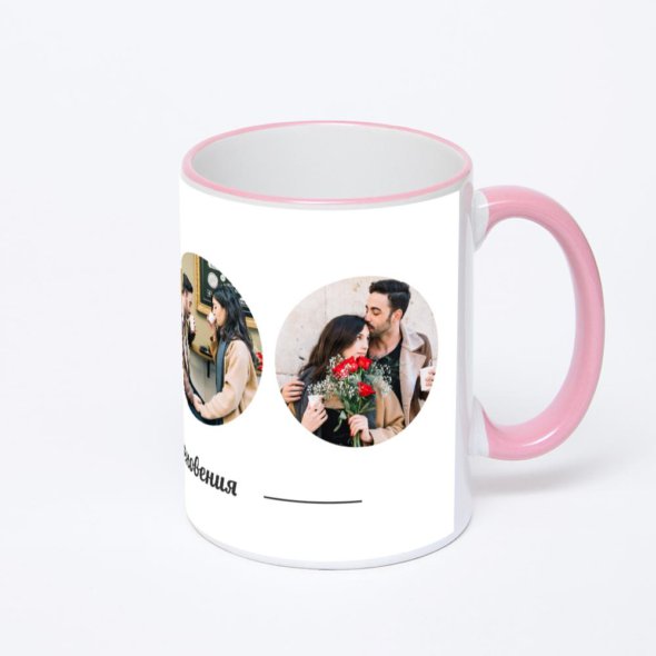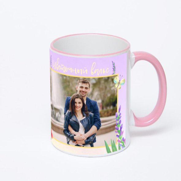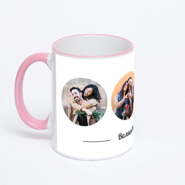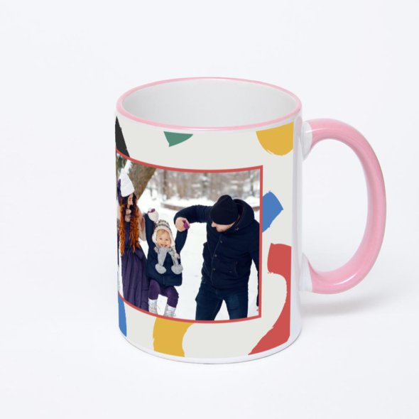 Керамическая кружка с розовой ручкой и ободком с нанесением изображения. Кружка с вашим изображением – это уникальный и качественный подарок. Создать её вы можете прямо сейчас в редакторе, добавляя фотографии, стикеры и надписи.