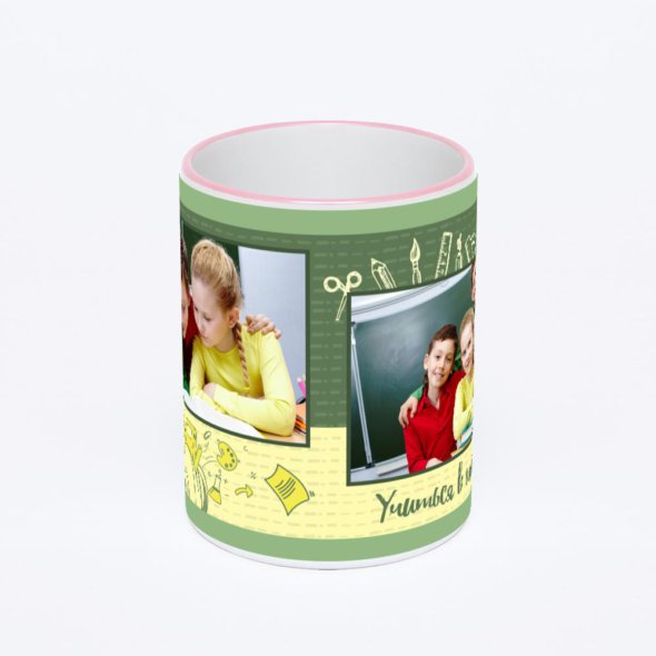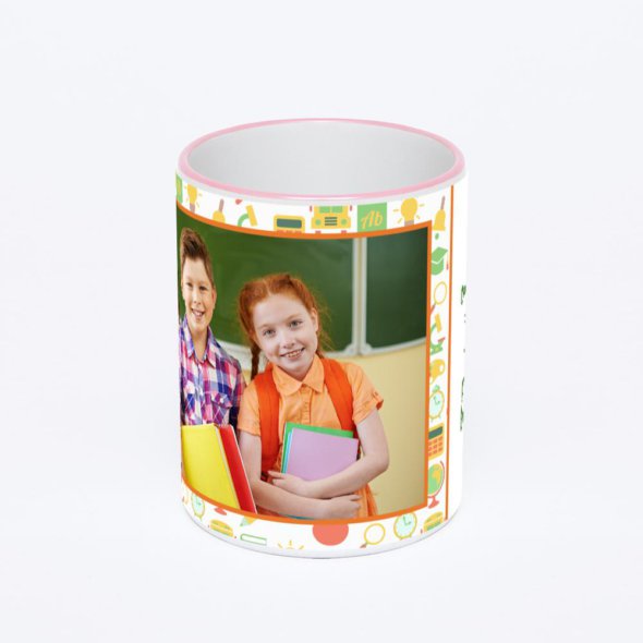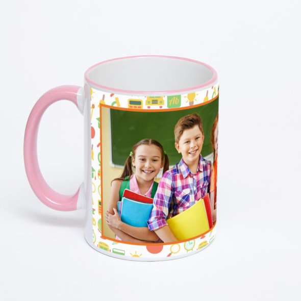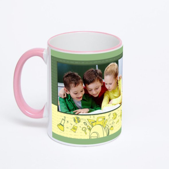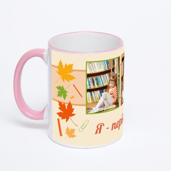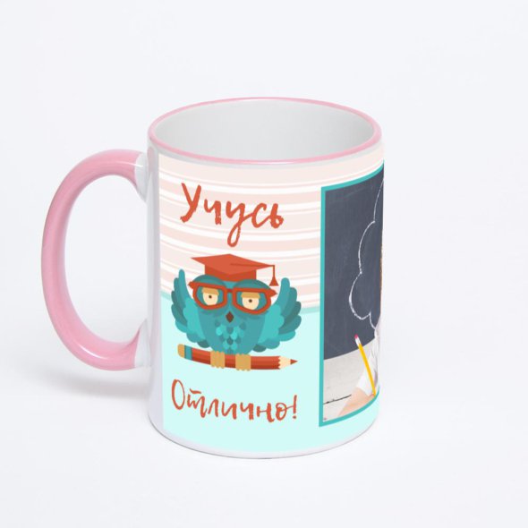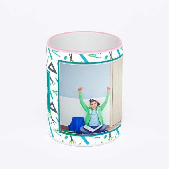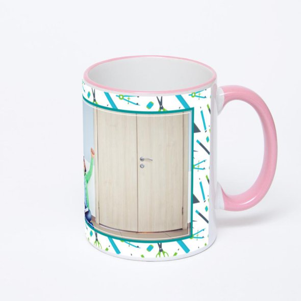 Керамическая кружка с розовой ручкой и ободком с нанесением изображения. Кружка с вашим изображением – это уникальный и качественный подарок. Создать её вы можете прямо сейчас в редакторе, добавляя фотографии, стикеры и надписи.