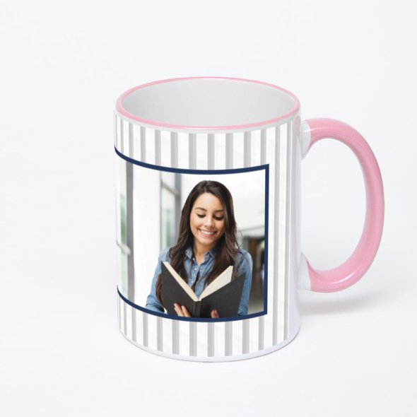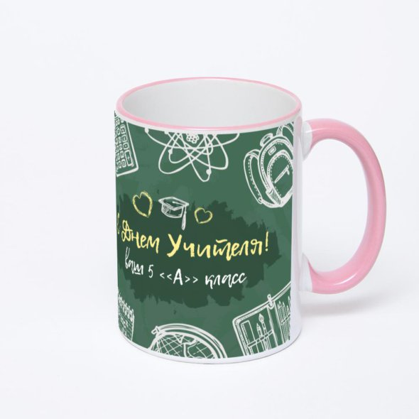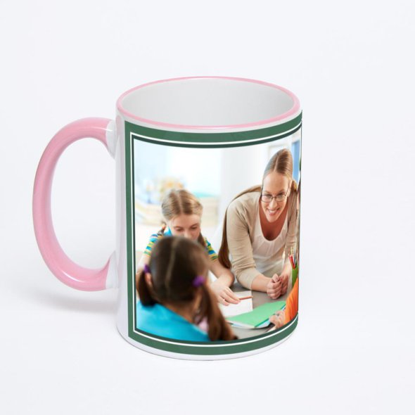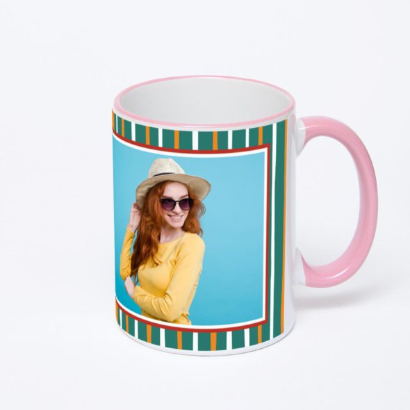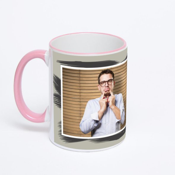 Керамическая кружка с розовой ручкой и ободком с нанесением изображения. Кружка с вашим изображением – это уникальный и качественный подарок. Создать её вы можете прямо сейчас в редакторе, добавляя фотографии, стикеры и надписи.