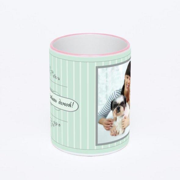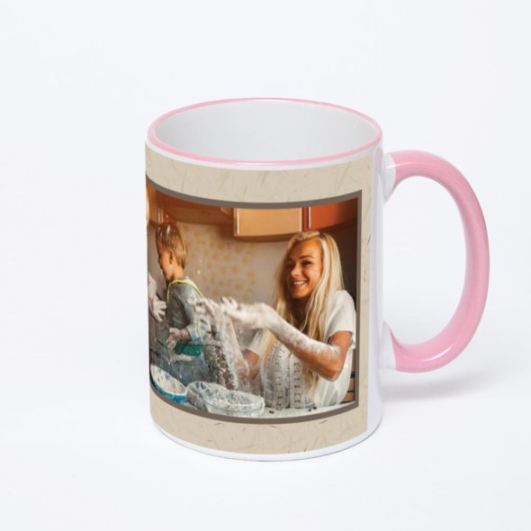 Керамическая кружка с розовой ручкой и ободком с нанесением изображения. Кружка с вашим изображением – это уникальный и качественный подарок. Создать её вы можете прямо сейчас в редакторе, добавляя фотографии, стикеры и надписи.