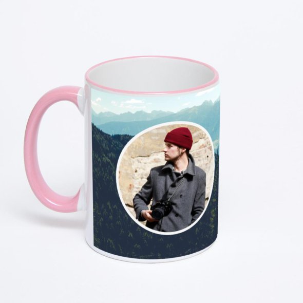 Керамическая кружка с розовой ручкой и ободком с нанесением изображения. Кружка с вашим изображением – это уникальный и качественный подарок. Создать её вы можете прямо сейчас в редакторе, добавляя фотографии, стикеры и надписи.