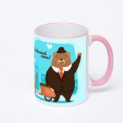 Керамическая кружка с розовой ручкой и ободком с нанесением изображения. Срок печати на кружке – 2 часа.
