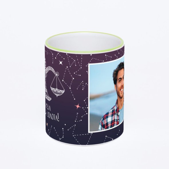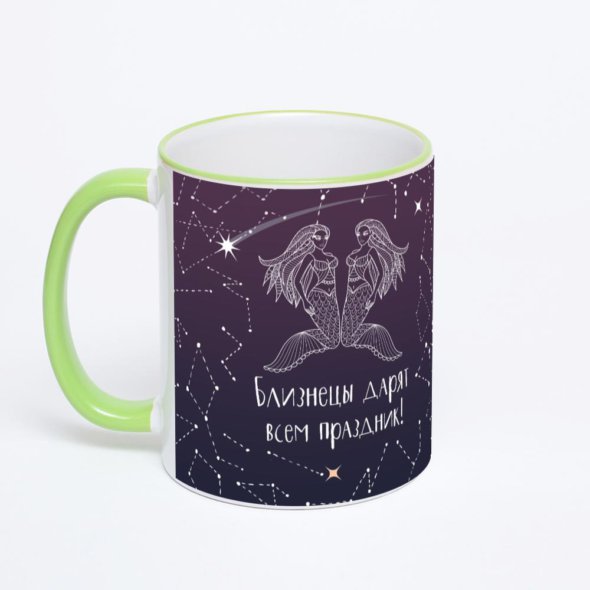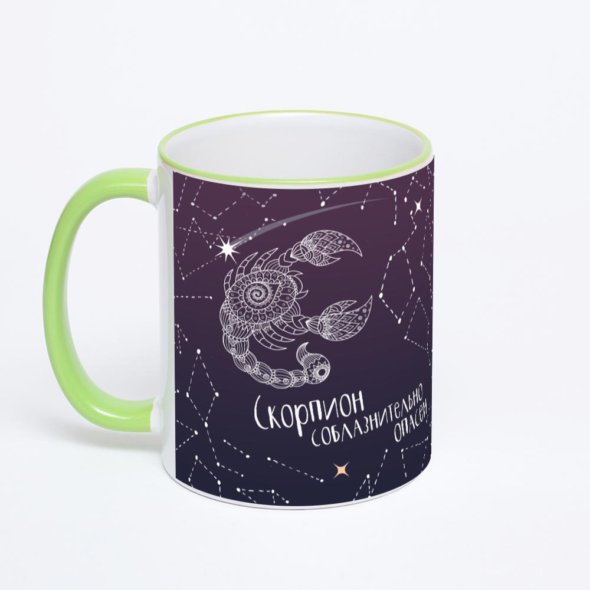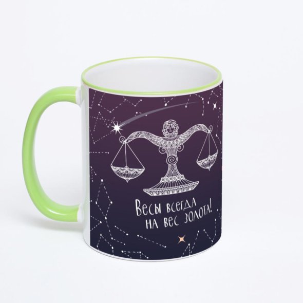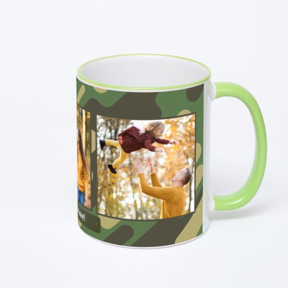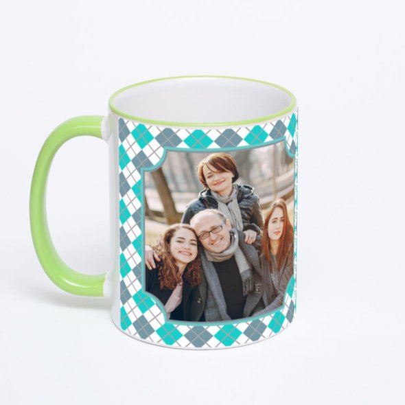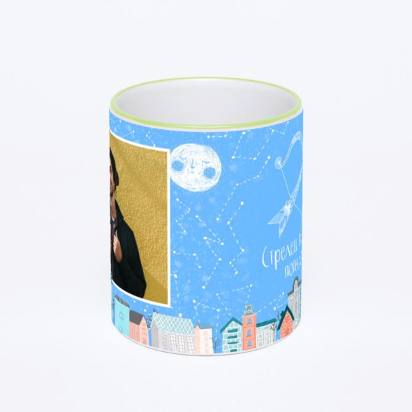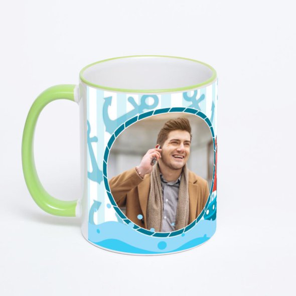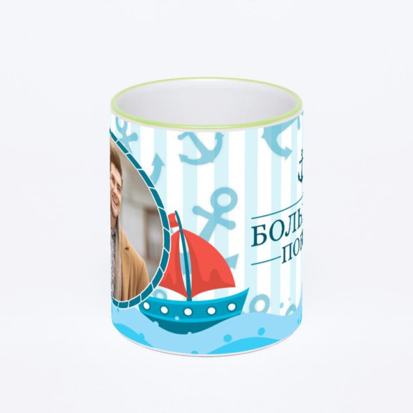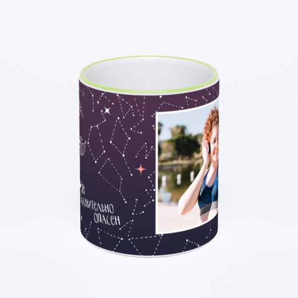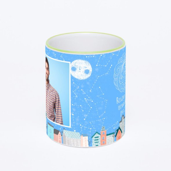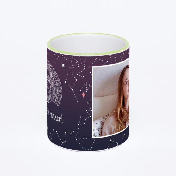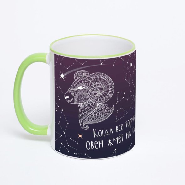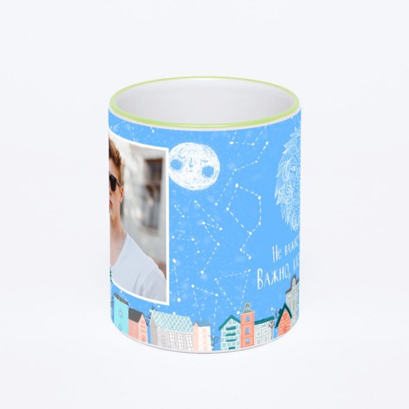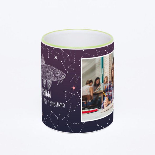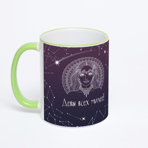 Керамическая кружка с салатовой ручкой и ободком с нанесением изображения. Кружка с вашим изображением – это уникальный и качественный подарок. Создать её вы можете прямо сейчас в редакторе, добавляя фотографии, стикеры и надписи.