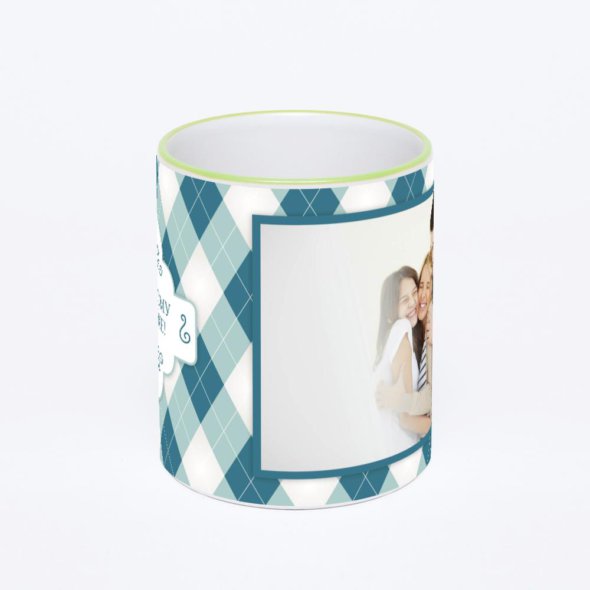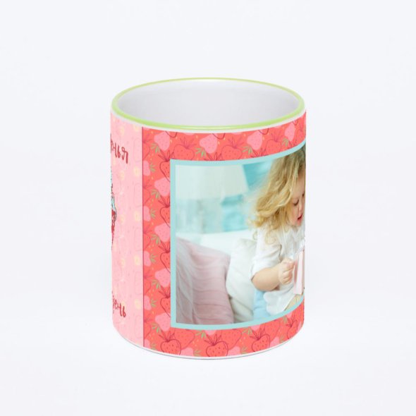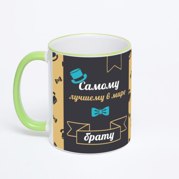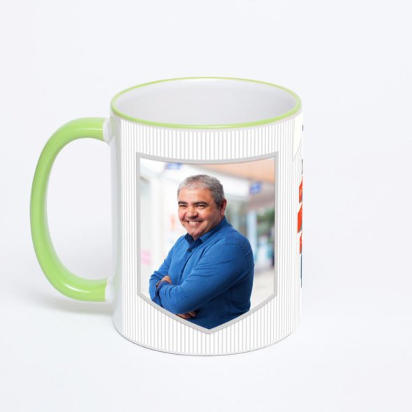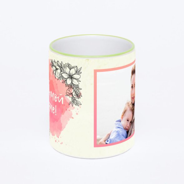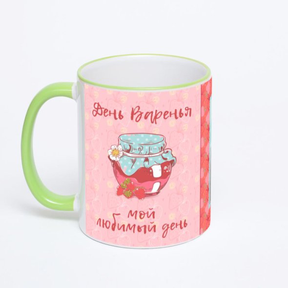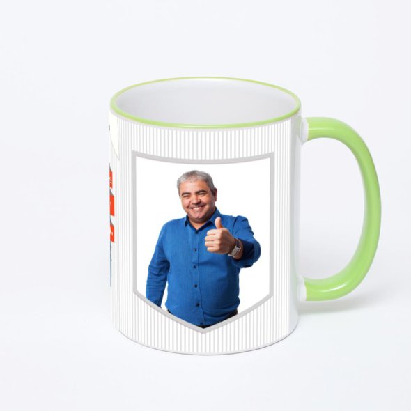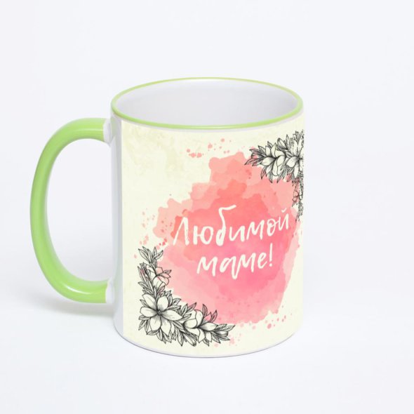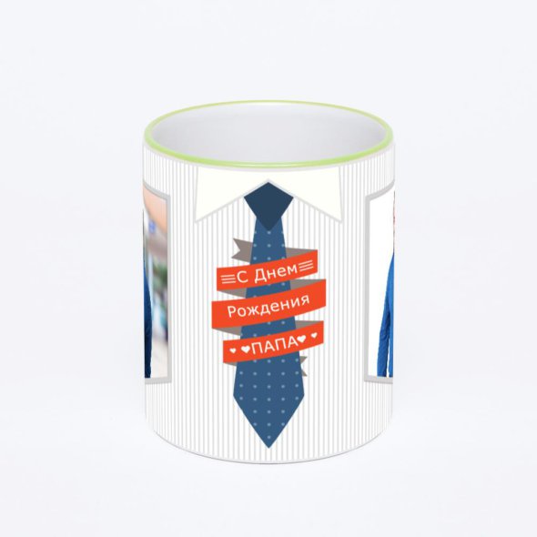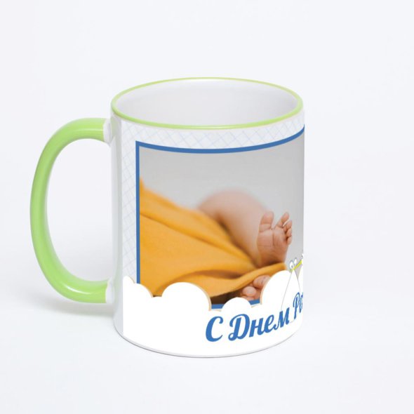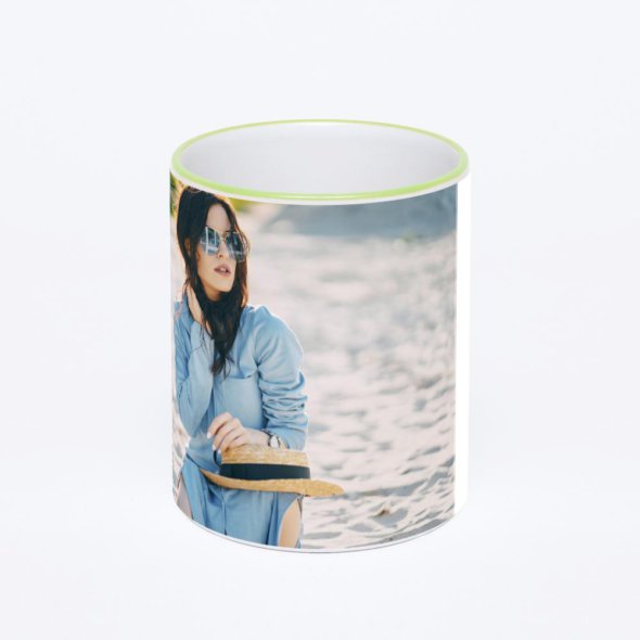Керамическая кружка с салатовой ручкой и ободком с нанесением изображения. Кружка с вашим изображением – это уникальный и качественный подарок. Создать её вы можете прямо сейчас в редакторе, добавляя фотографии, стикеры и надписи.