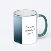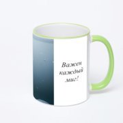 Керамическая кружка с салатовой ручкой и ободком с нанесением изображения. Срок печати на кружке – 2 часа.