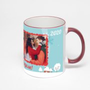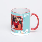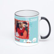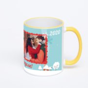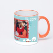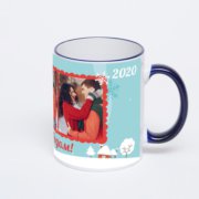 Керамическая кружка с тёмно-синей ручкой и ободком с нанесением изображения. Кружка с вашим изображением – это уникальный и качественный подарок. Создать её вы можете прямо сейчас в редакторе, добавляя фотографии, стикеры и надписи.