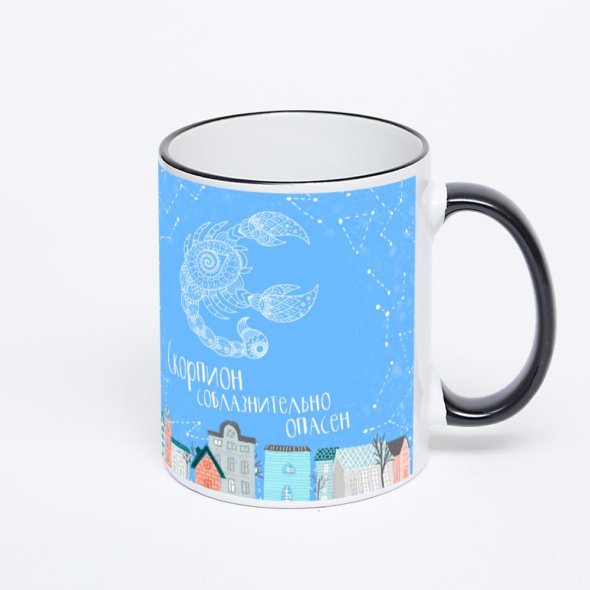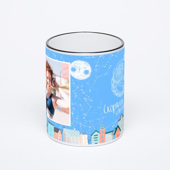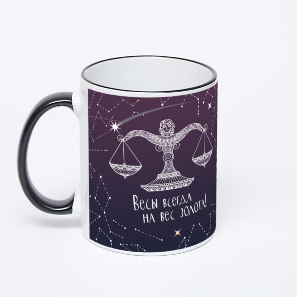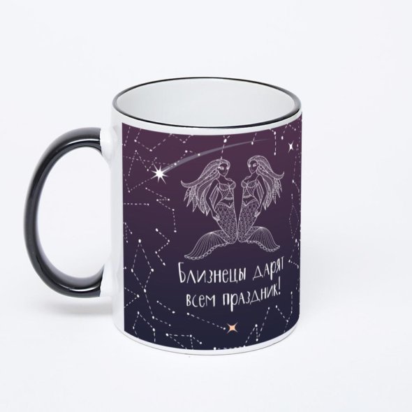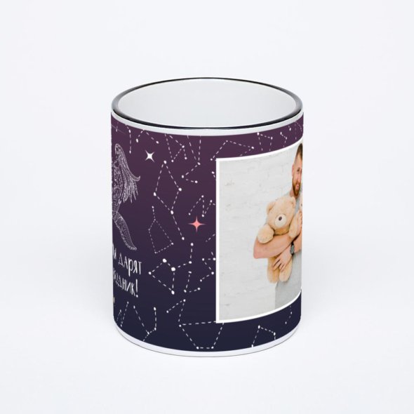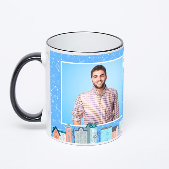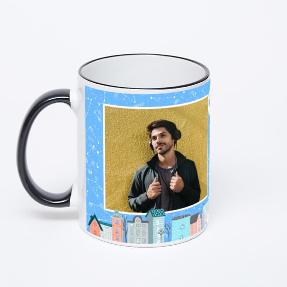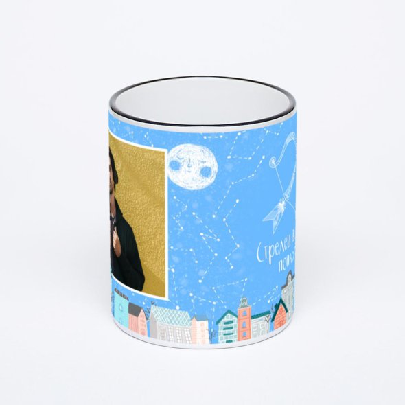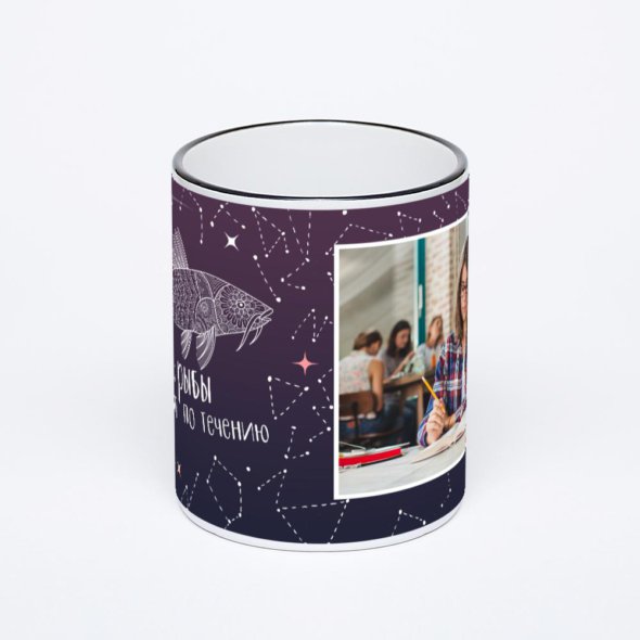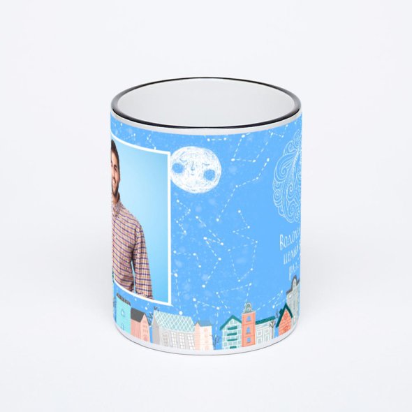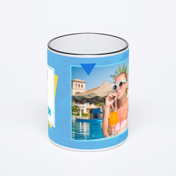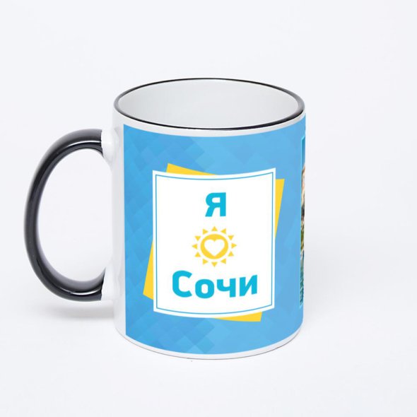 Керамическая кружка с черной ручкой и ободком с нанесением изображения. Кружка с вашим изображением – это уникальный и качественный подарок. Создать её вы можете прямо сейчас в редакторе, добавляя фотографии, стикеры и надписи.