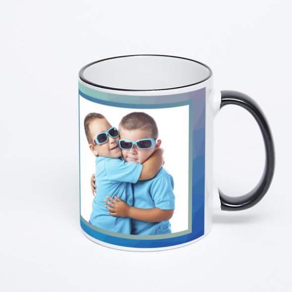 Керамическая кружка с черной ручкой и ободком с нанесением изображения. Кружка с вашим изображением – это уникальный и качественный подарок. Создать её вы можете прямо сейчас в редакторе, добавляя фотографии, стикеры и надписи.