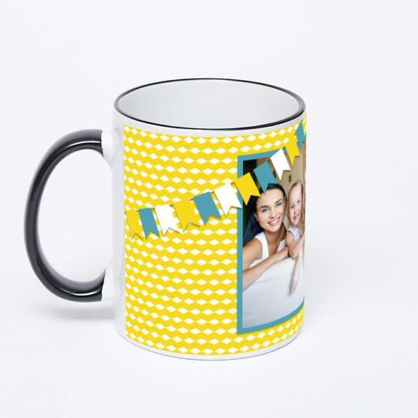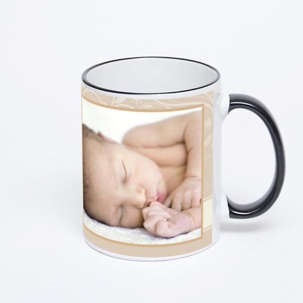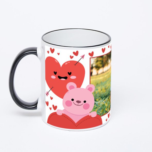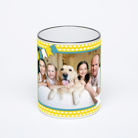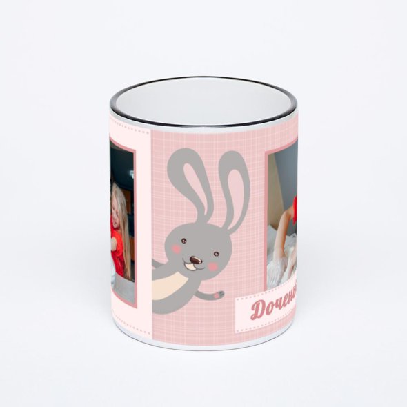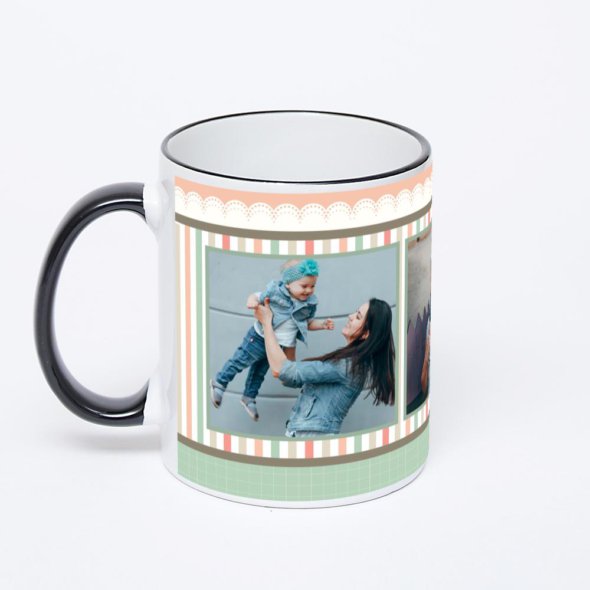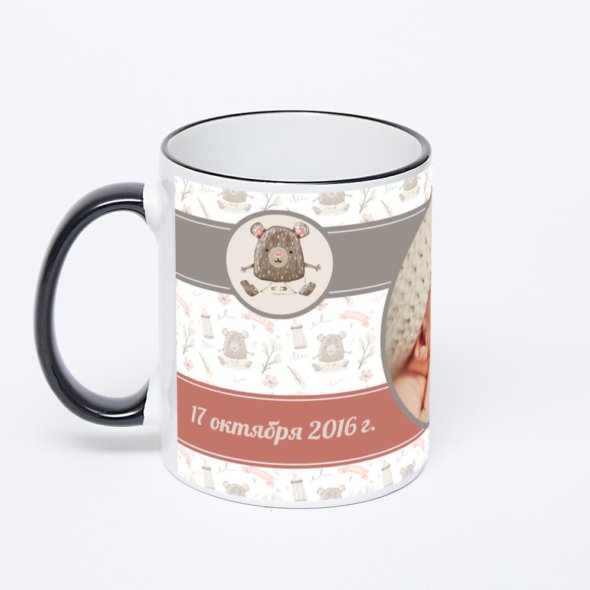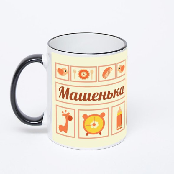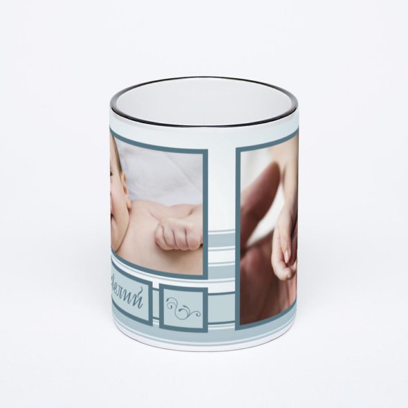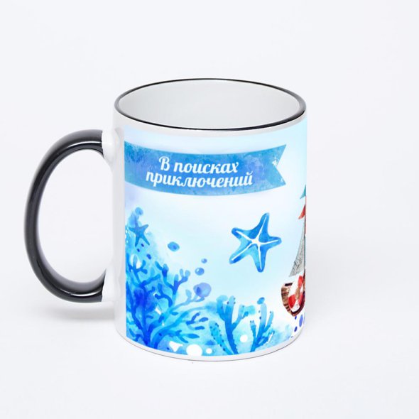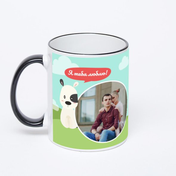 Керамическая кружка с черной ручкой и ободком с нанесением изображения. Кружка с вашим изображением – это уникальный и качественный подарок. Создать её вы можете прямо сейчас в редакторе, добавляя фотографии, стикеры и надписи.