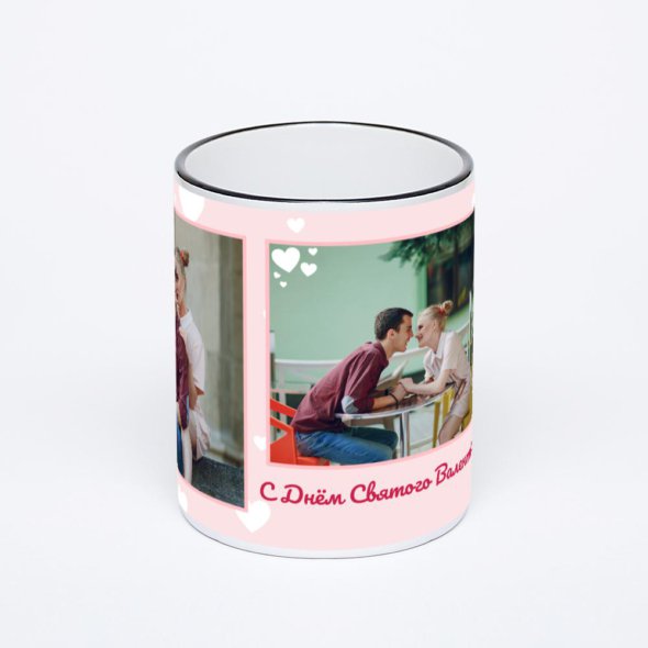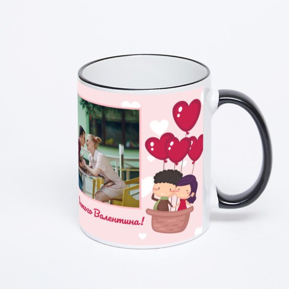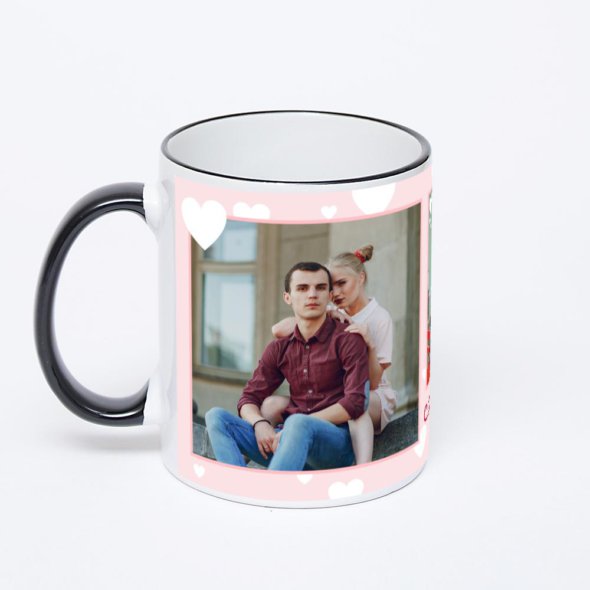 Керамическая кружка с черной ручкой и ободком с нанесением изображения. Кружка с вашим изображением – это уникальный и качественный подарок. Создать её вы можете прямо сейчас в редакторе, добавляя фотографии, стикеры и надписи.