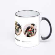 Керамическая кружка с черной ручкой и ободком с нанесением изображения. Кружка с вашим изображением – это уникальный и качественный подарок. Создать её вы можете прямо сейчас в редакторе, добавляя фотографии, стикеры и надписи.
