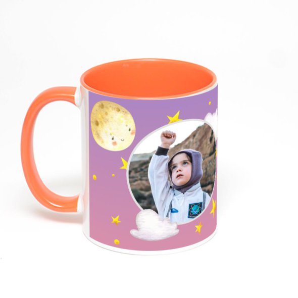 Керамическая кружка окрашенная внутри с цветной ручкой с нанесением изображения. Кружка с вашим изображением – это уникальный и качественный подарок. Создать её вы можете прямо сейчас в редакторе, добавляя фотографии, стикеры и надписи. Срок изготовления кружки – 2 часа.