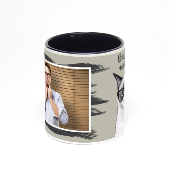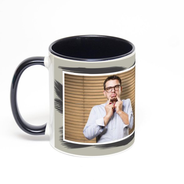 Керамическая кружка окрашенная внутри с цветной ручкой с нанесением изображения. Кружка с вашим изображением – это уникальный и качественный подарок. Создать её вы можете прямо сейчас в редакторе, добавляя фотографии, стикеры и надписи. Срок изготовления кружки – 2 часа.