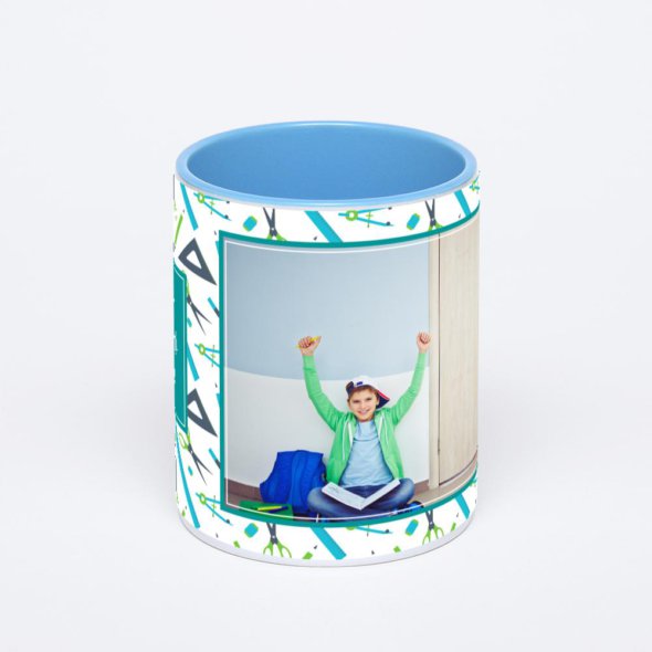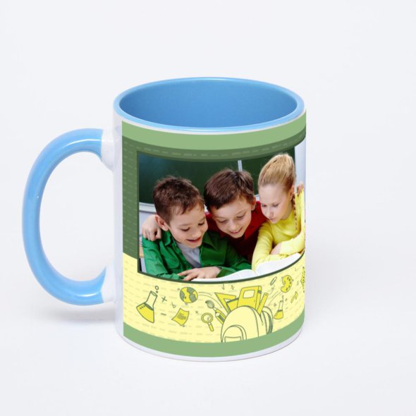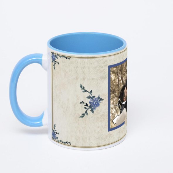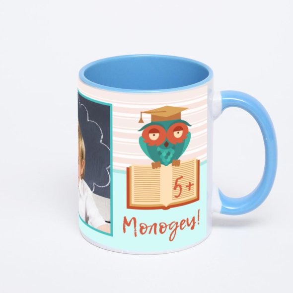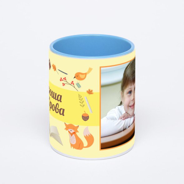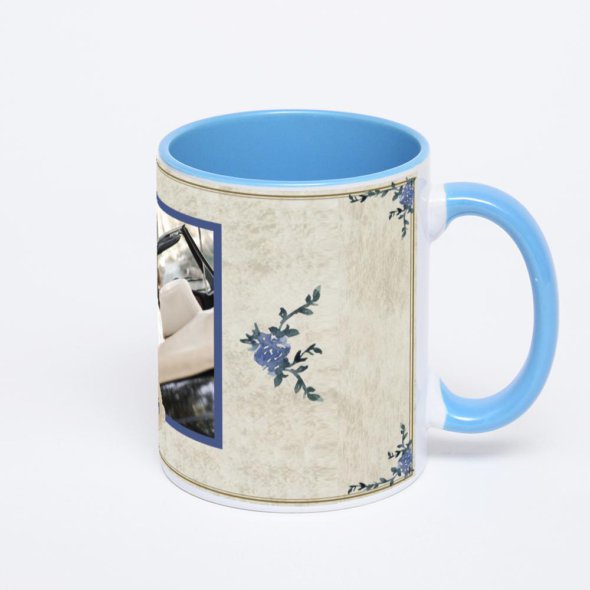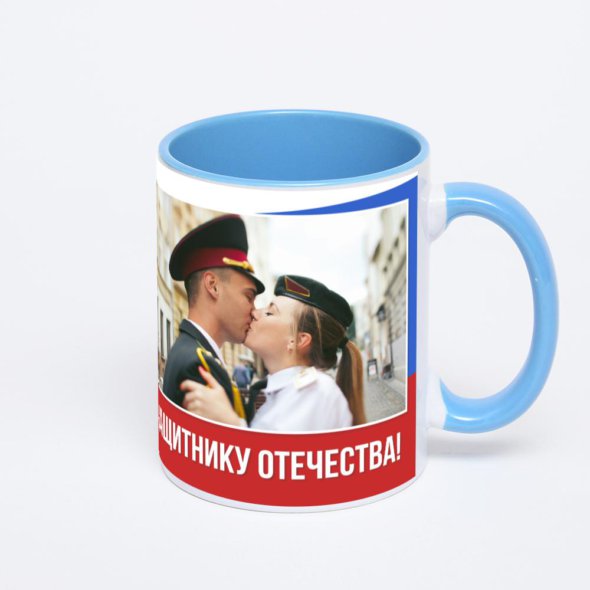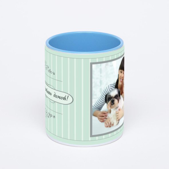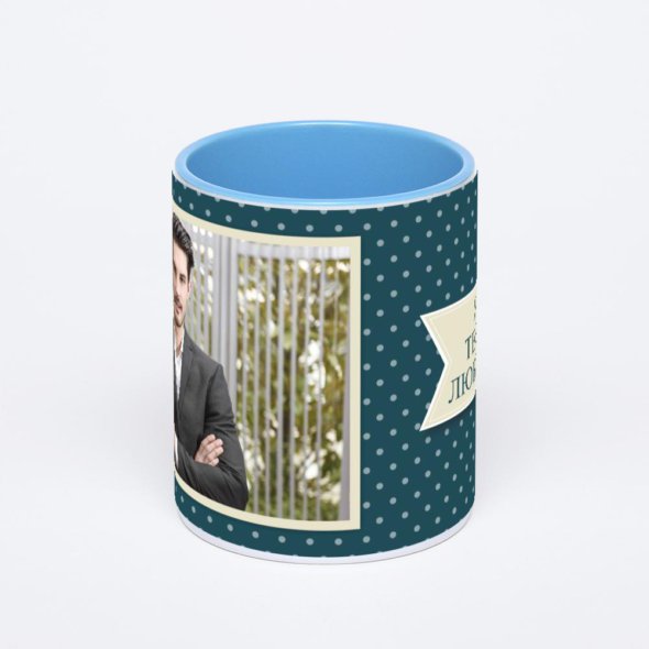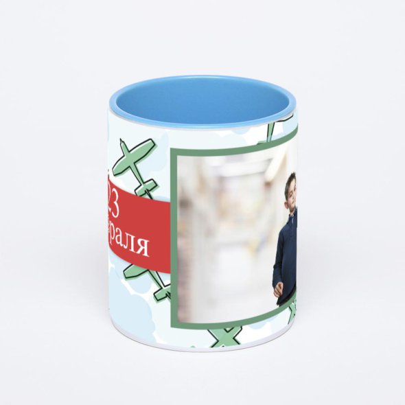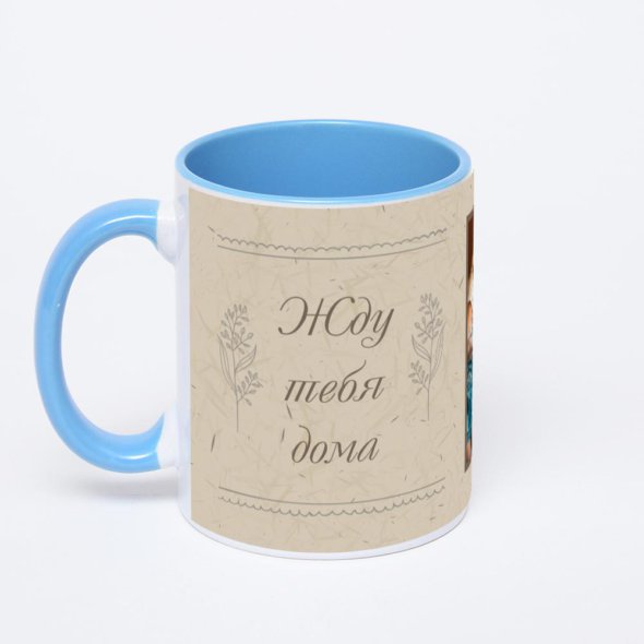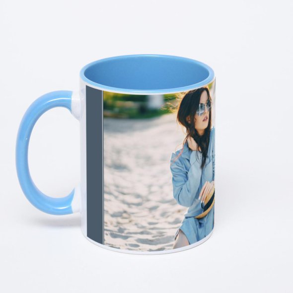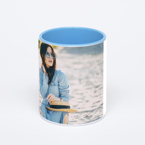 Керамическая кружка окрашенная внутри синим цветом с синей ручкой с нанесением изображения. Кружка с вашим изображением – это уникальный и качественный подарок. Создать её вы можете прямо сейчас в редакторе, добавляя фотографии, стикеры и надписи.