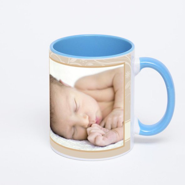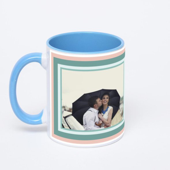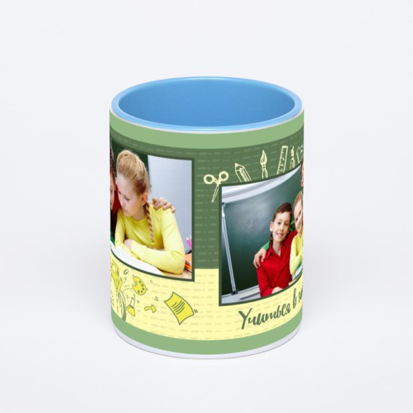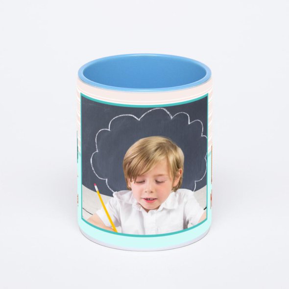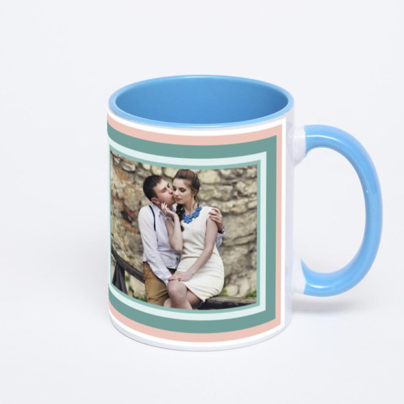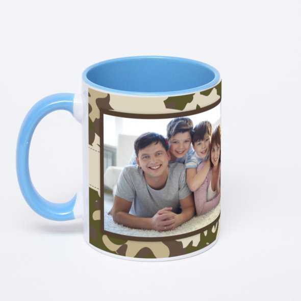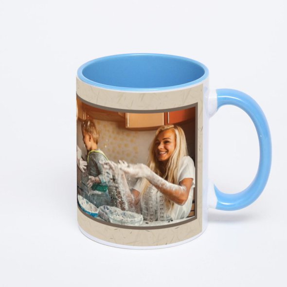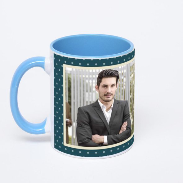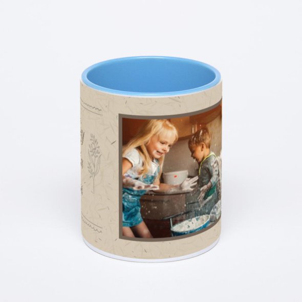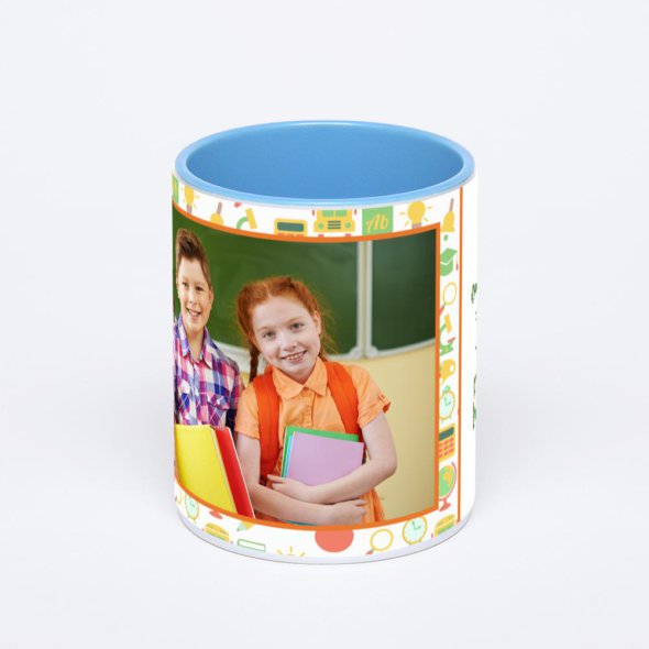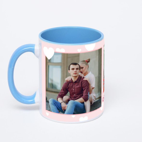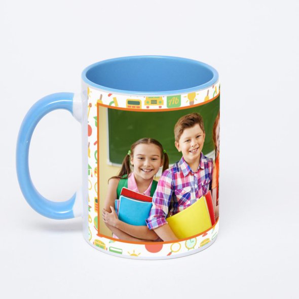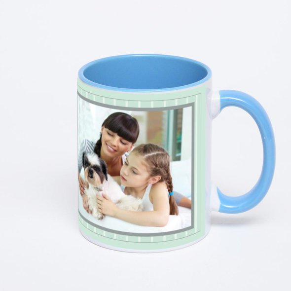 Керамическая кружка окрашенная внутри синим цветом с синей ручкой с нанесением изображения. Кружка с вашим изображением – это уникальный и качественный подарок. Создать её вы можете прямо сейчас в редакторе, добавляя фотографии, стикеры и надписи.