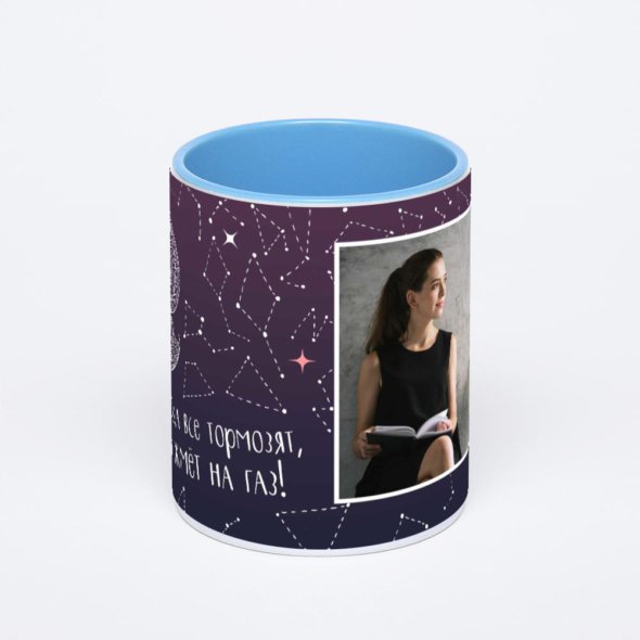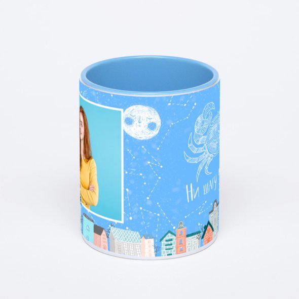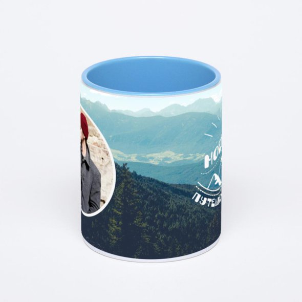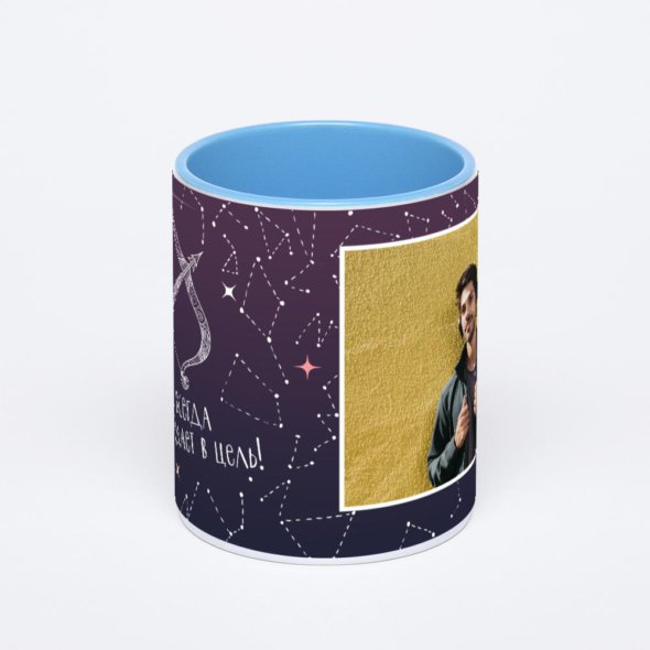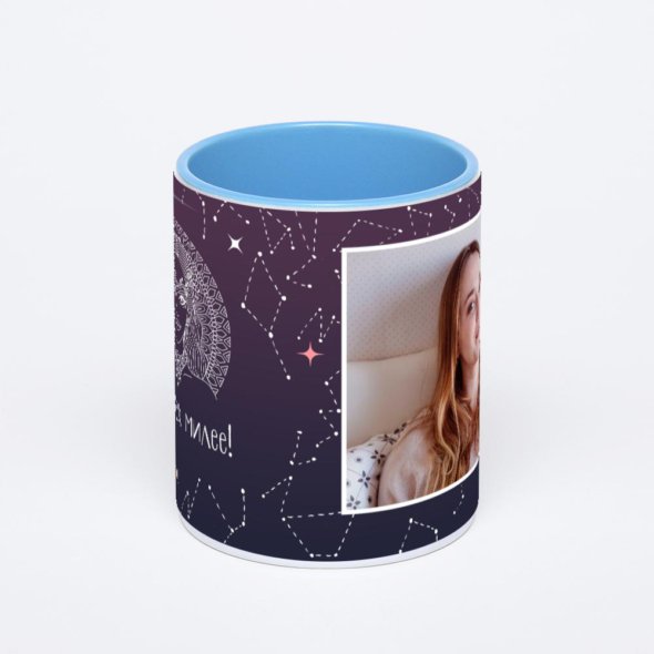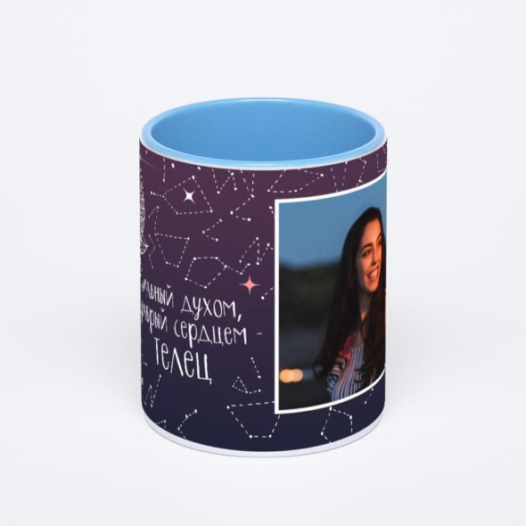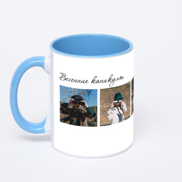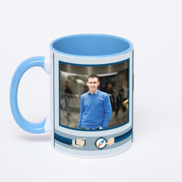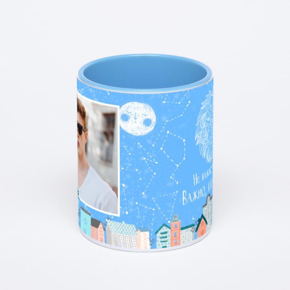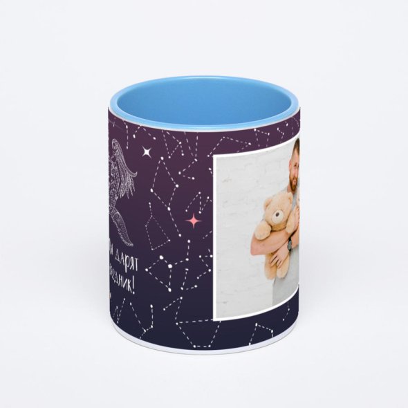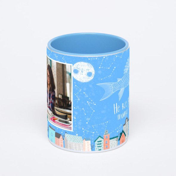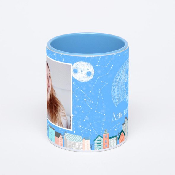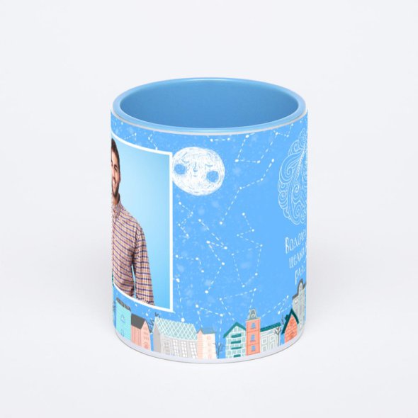 Керамическая кружка окрашенная внутри синим цветом с синей ручкой с нанесением изображения. Кружка с вашим изображением – это уникальный и качественный подарок. Создать её вы можете прямо сейчас в редакторе, добавляя фотографии, стикеры и надписи.