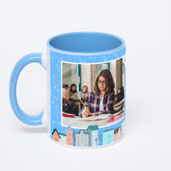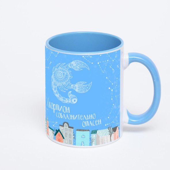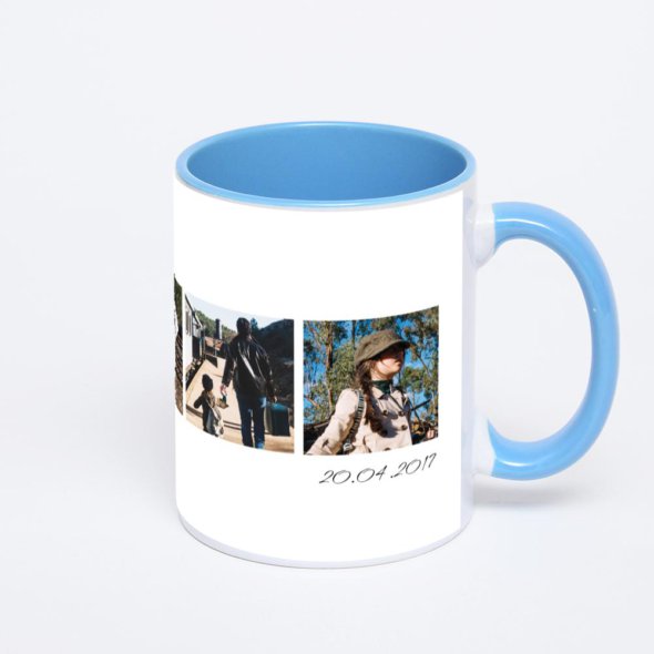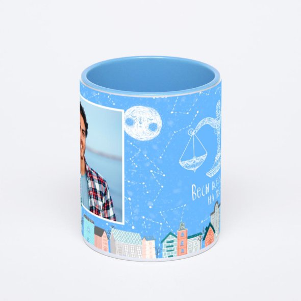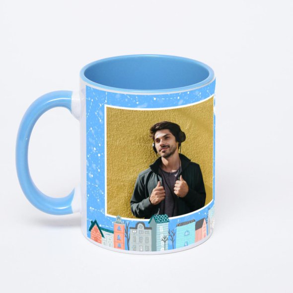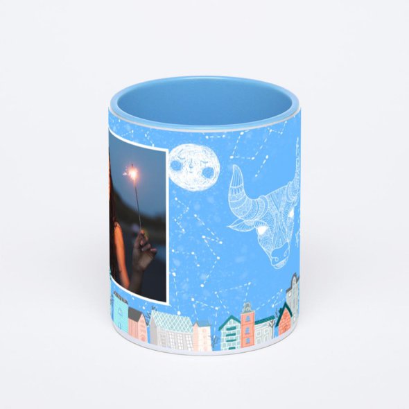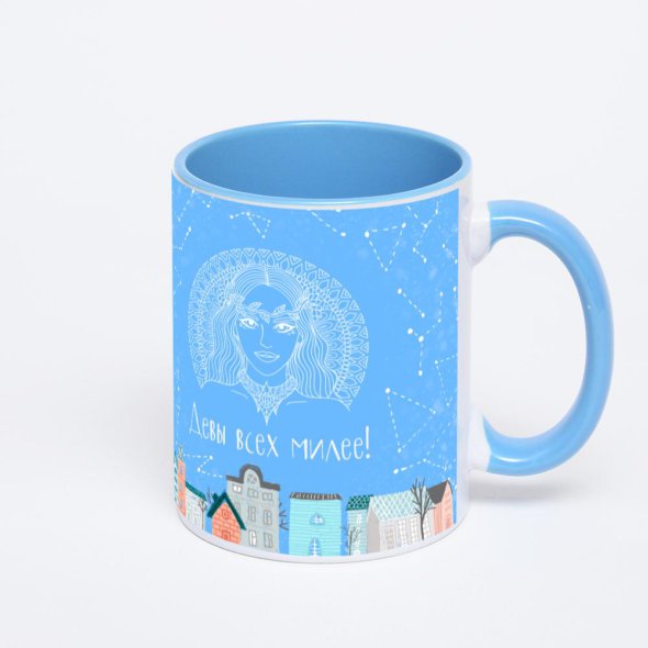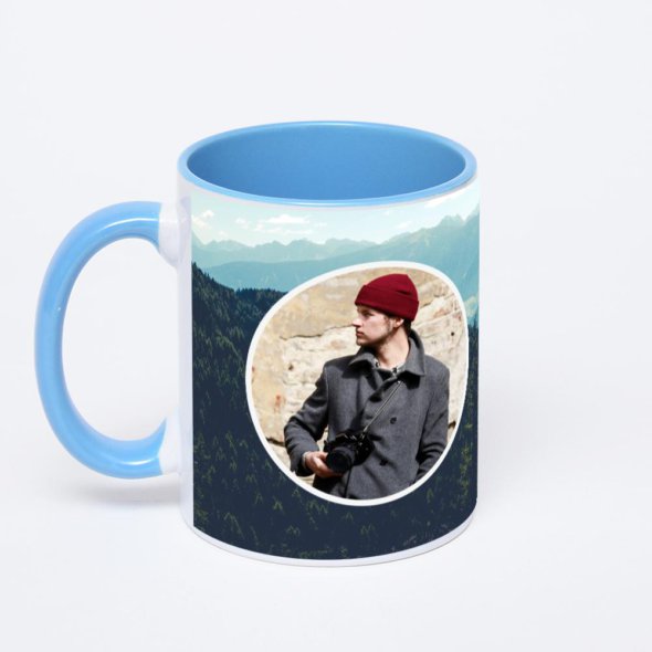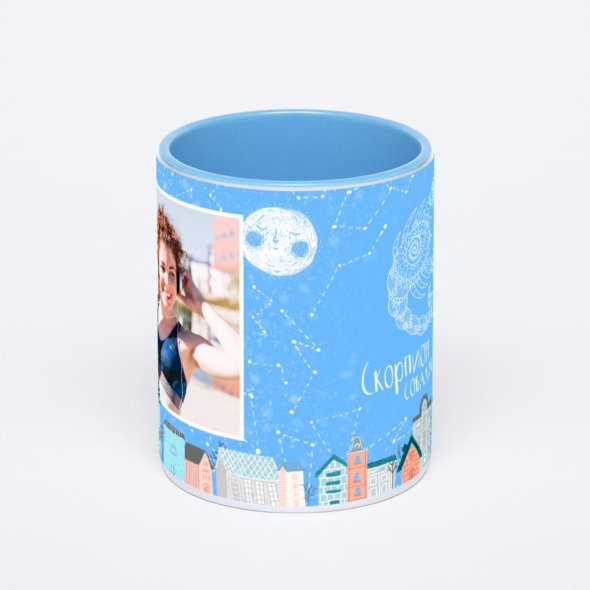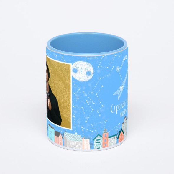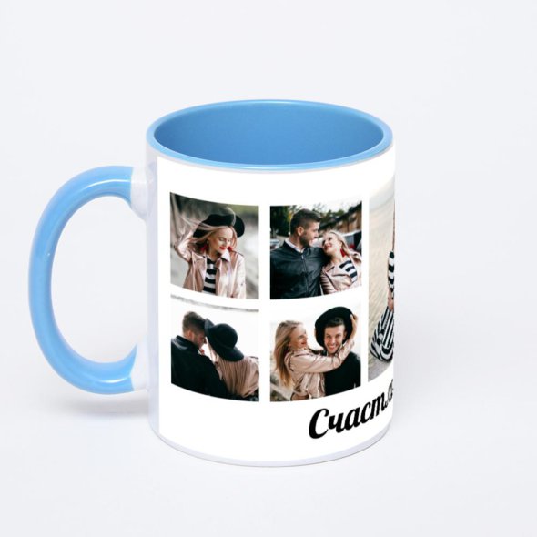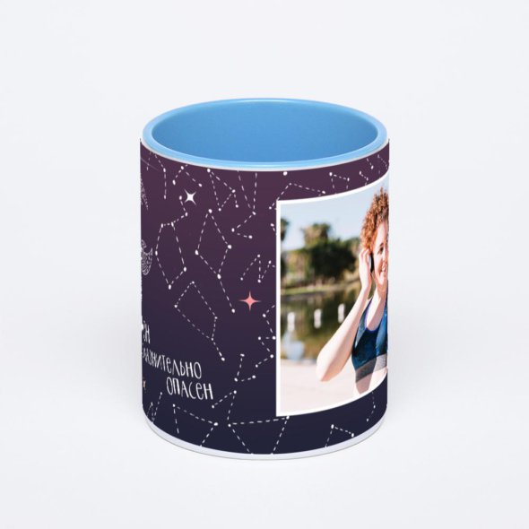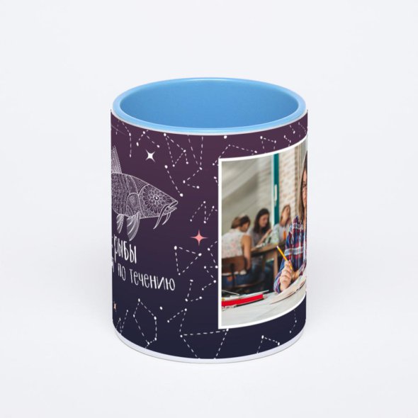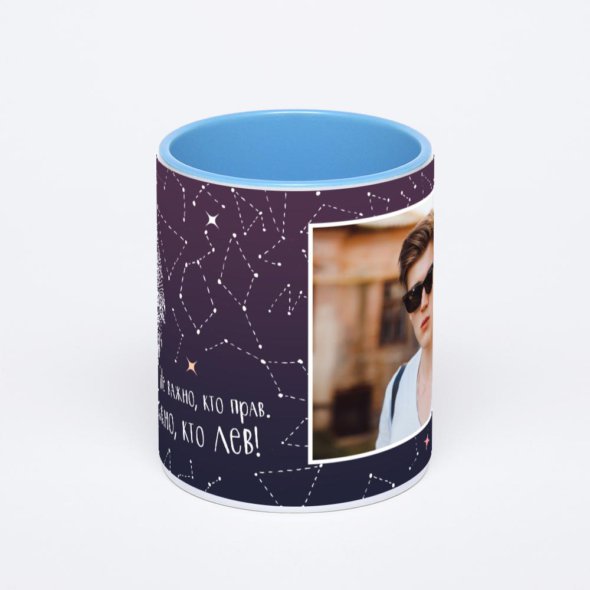 Керамическая кружка окрашенная внутри синим цветом с синей ручкой с нанесением изображения. Кружка с вашим изображением – это уникальный и качественный подарок. Создать её вы можете прямо сейчас в редакторе, добавляя фотографии, стикеры и надписи.