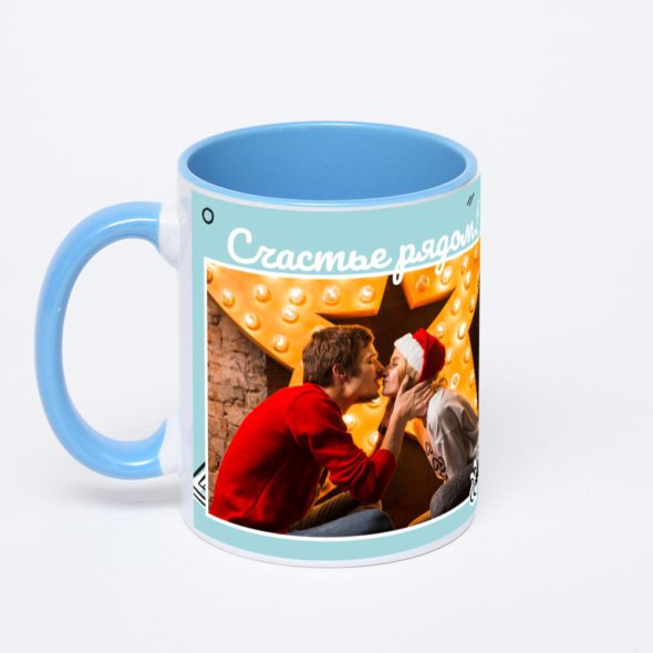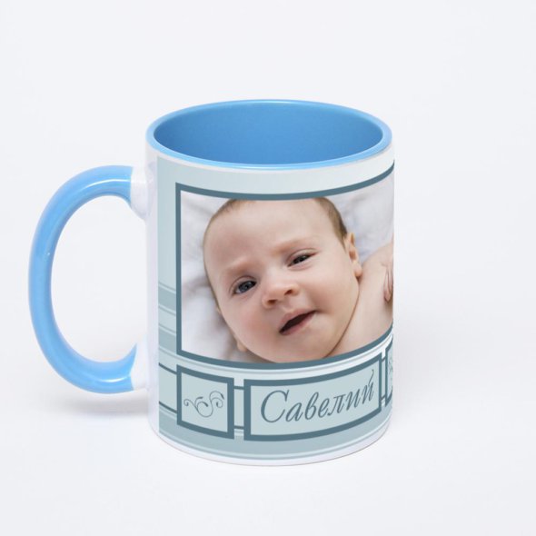 Синяя кружка с фотопечатью
