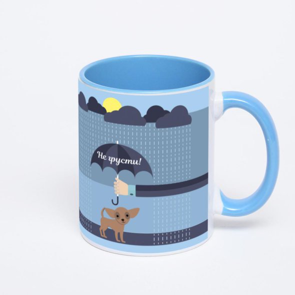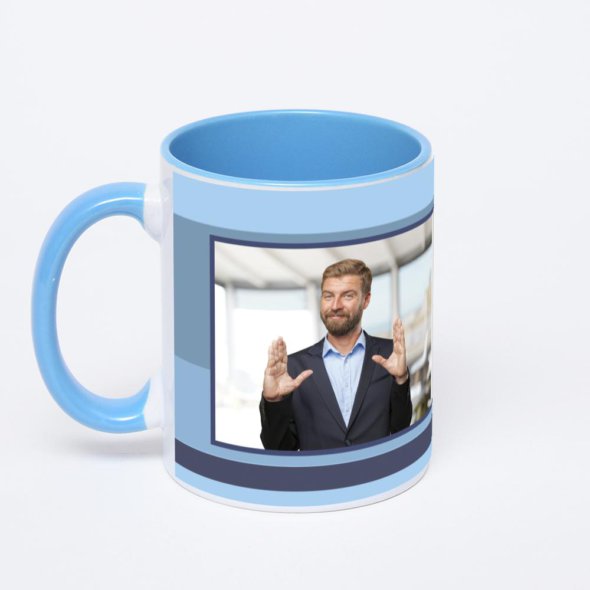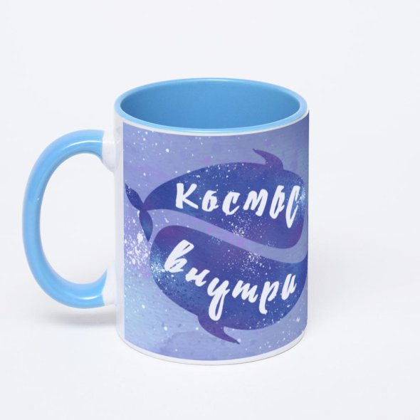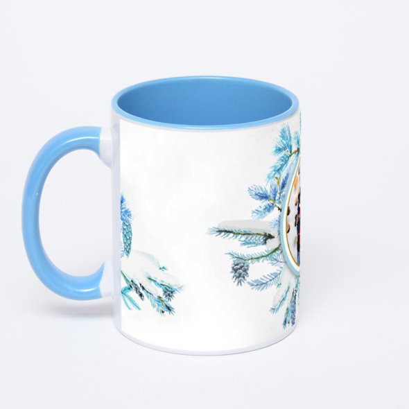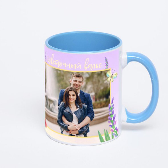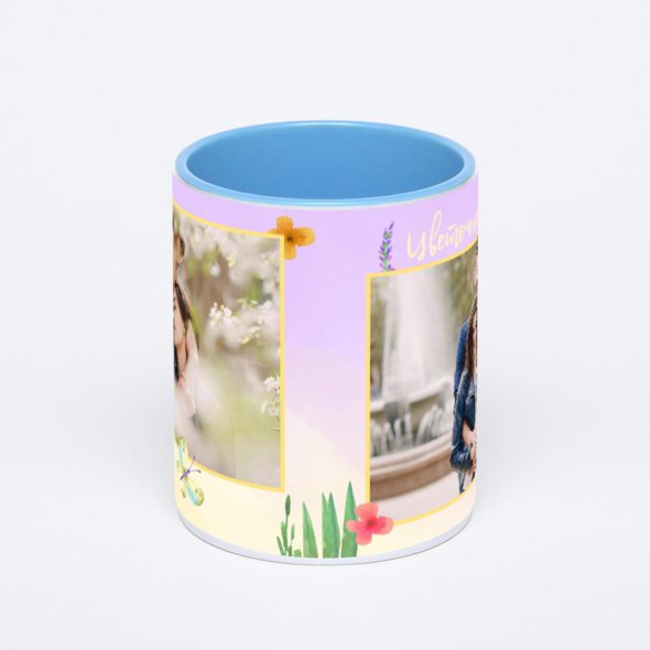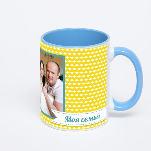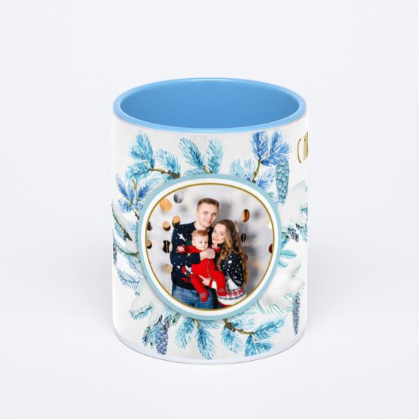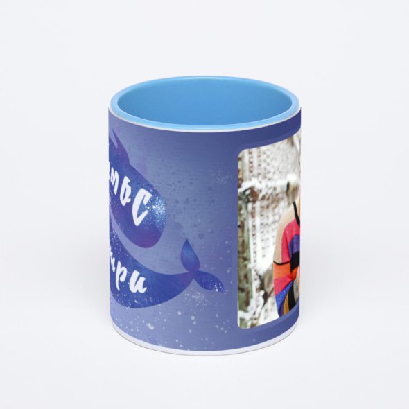 Керамическая кружка окрашенная внутри синим цветом с синей ручкой с нанесением изображения. Кружка с вашим изображением – это уникальный и качественный подарок. Создать её вы можете прямо сейчас в редакторе, добавляя фотографии, стикеры и надписи.