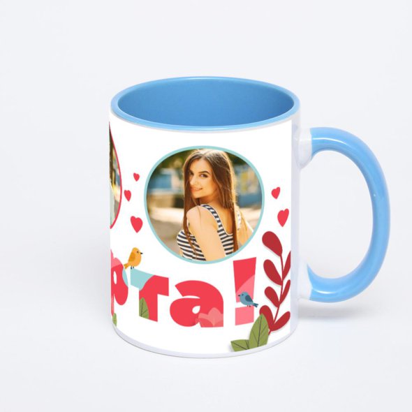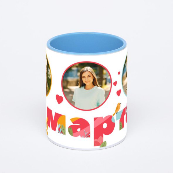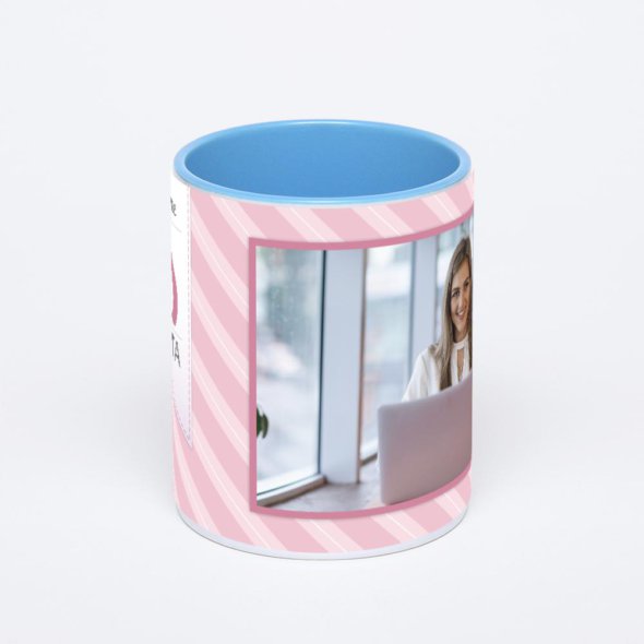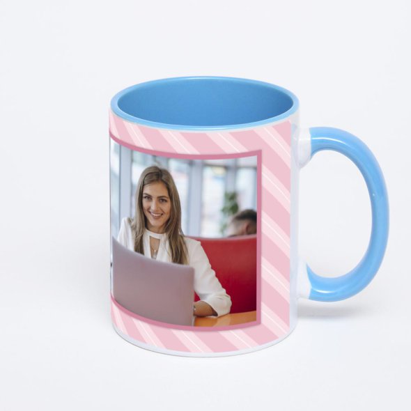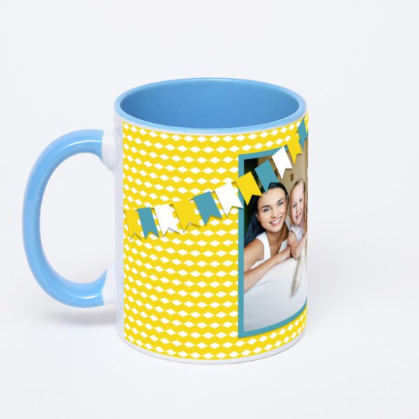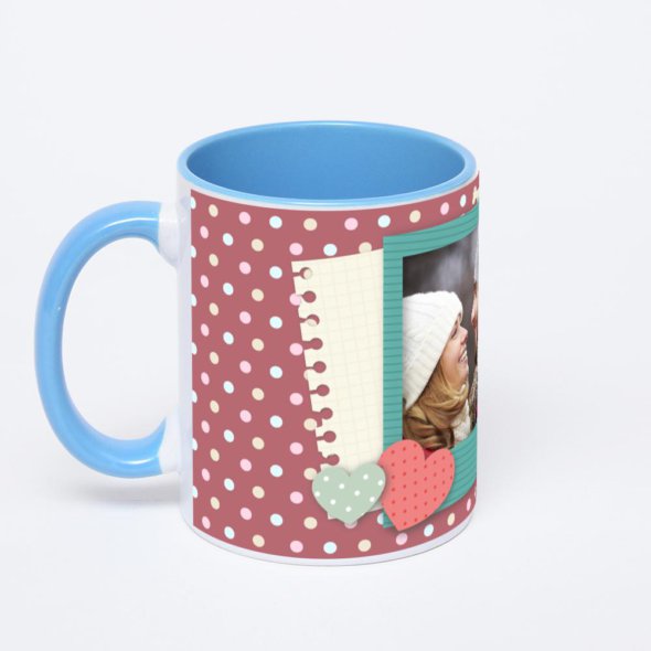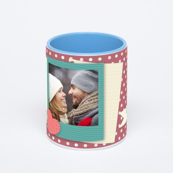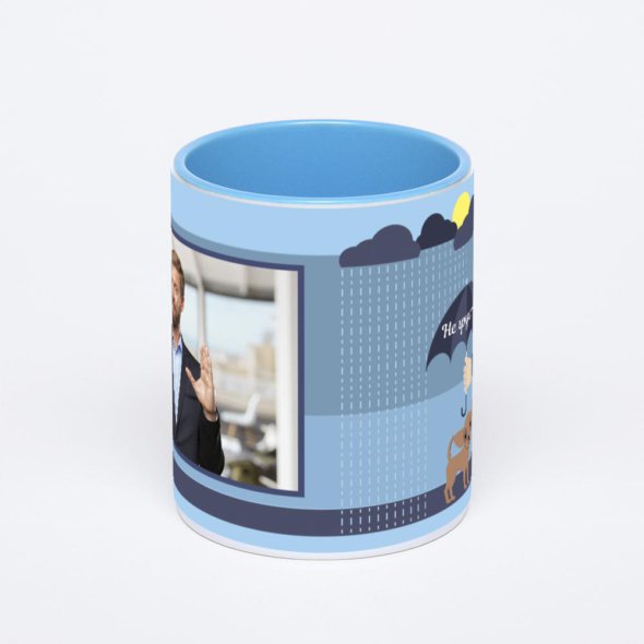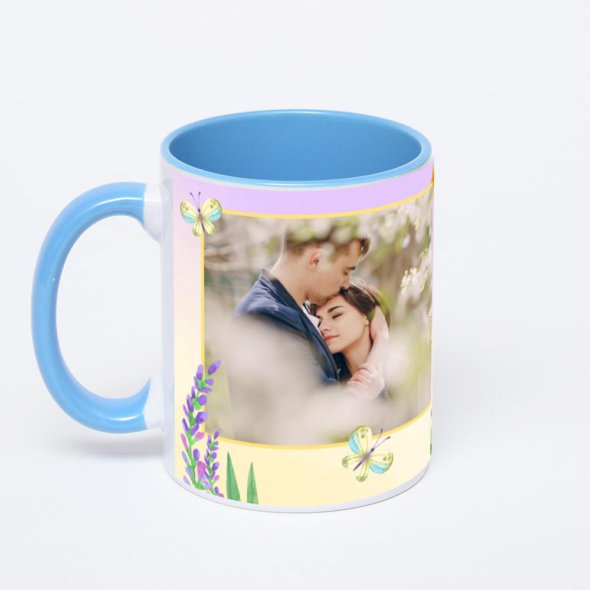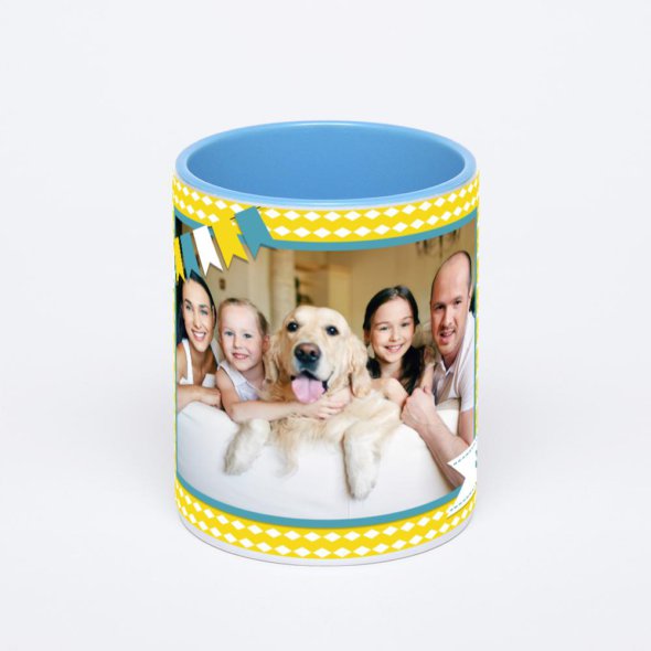 Керамическая кружка окрашенная внутри синим цветом с синей ручкой с нанесением изображения. Кружка с вашим изображением – это уникальный и качественный подарок. Создать её вы можете прямо сейчас в редакторе, добавляя фотографии, стикеры и надписи.