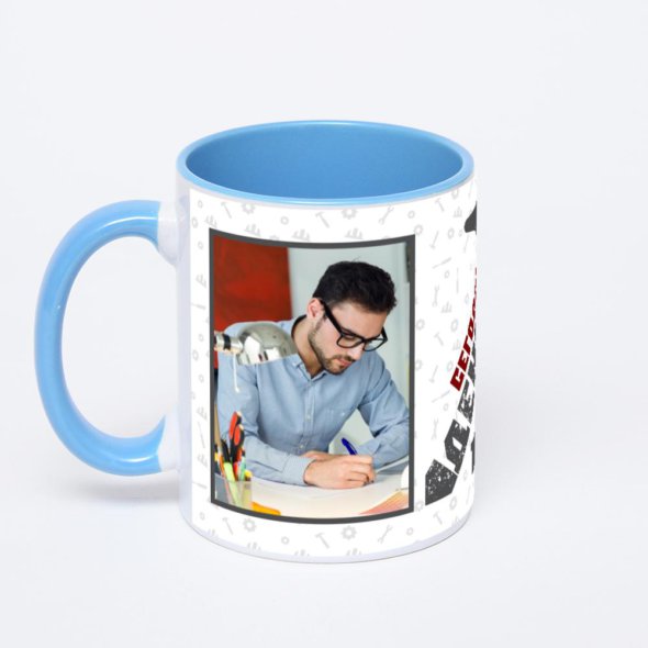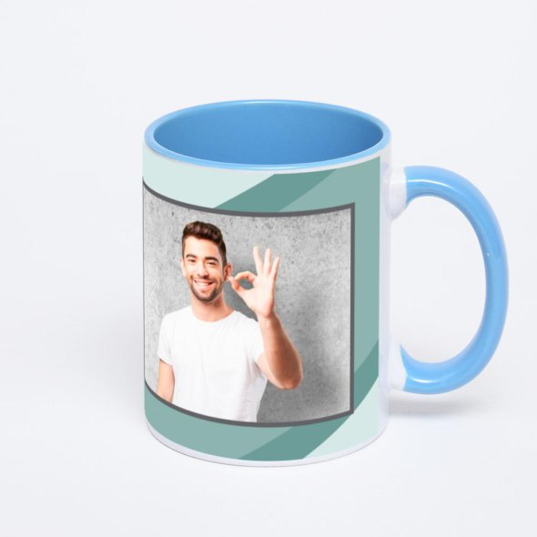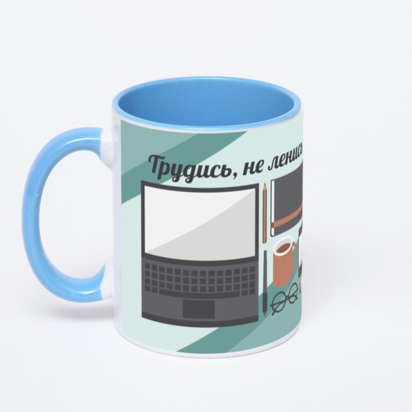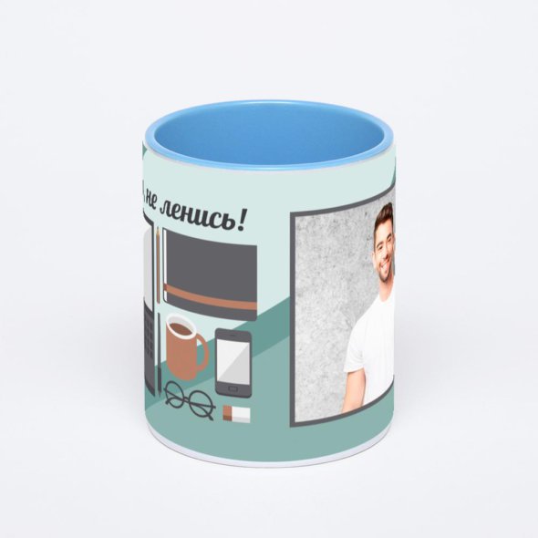 Керамическая кружка окрашенная внутри синим цветом с синей ручкой с нанесением изображения. Кружка с вашим изображением – это уникальный и качественный подарок. Создать её вы можете прямо сейчас в редакторе, добавляя фотографии, стикеры и надписи.
