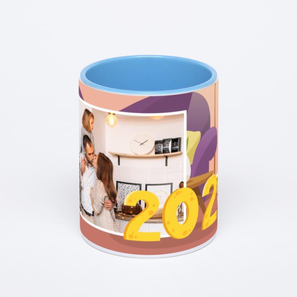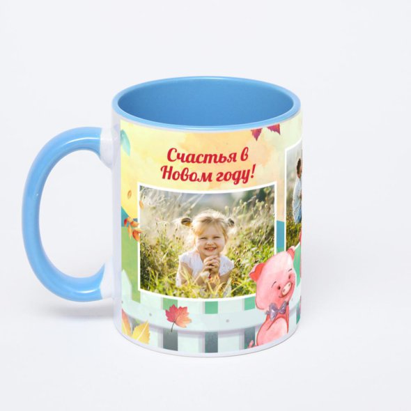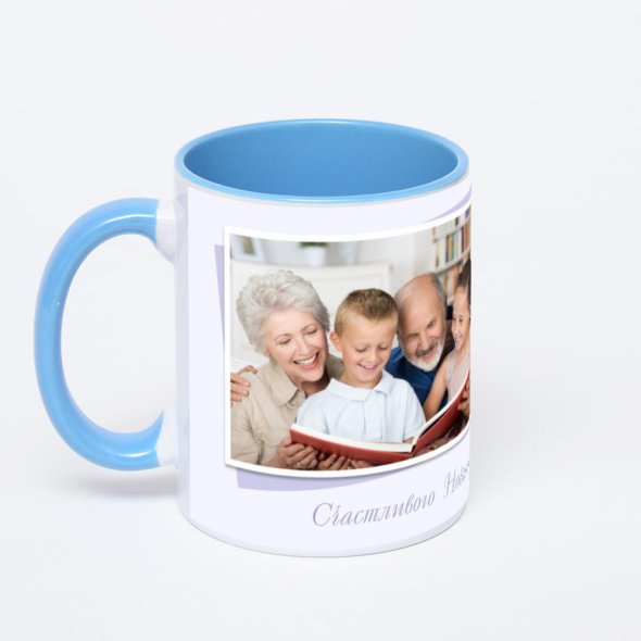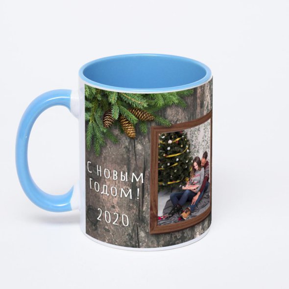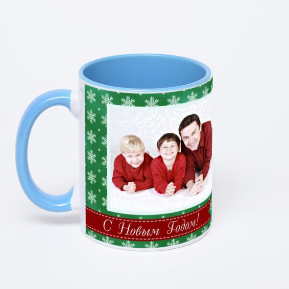 Синяя кружка с фотопечатью