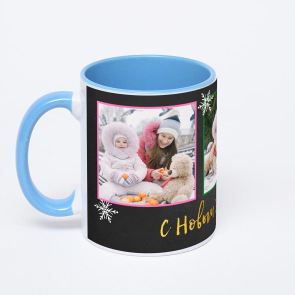 Керамическая кружка окрашенная внутри синим цветом с синей ручкой с нанесением изображения. Кружка с вашим изображением – это уникальный и качественный подарок. Создать её вы можете прямо сейчас в редакторе, добавляя фотографии, стикеры и надписи.