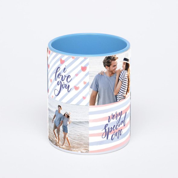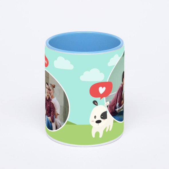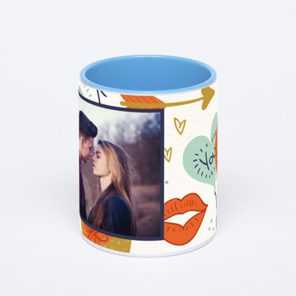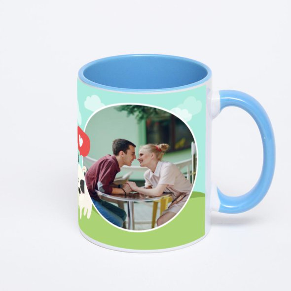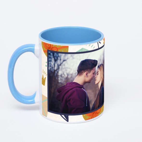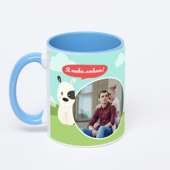 Керамическая кружка окрашенная внутри синим цветом с синей ручкой с нанесением изображения. Кружка с вашим изображением – это уникальный и качественный подарок. Создать её вы можете прямо сейчас в редакторе, добавляя фотографии, стикеры и надписи.