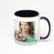 Керамическая кружка окрашенная синим внутри с синей ручкой с добавлением изображения в онлайн-редакторе макета.