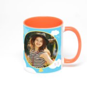 Керамическая кружка окрашенная синим внутри с синей ручкой с добавлением изображения в онлайн-редакторе макета.