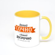 Синяя кружка с фотопечатью «Делай сочно - сдавай досрочно!»