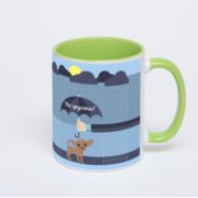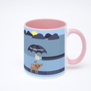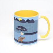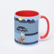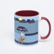Керамическая кружка окрашенная синим внутри с синей ручкой с добавлением изображения в онлайн-редакторе макета.