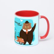 Керамическая кружка окрашенная синим внутри с синей ручкой с добавлением изображения в онлайн-редакторе макета.