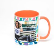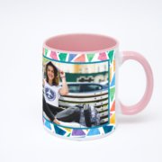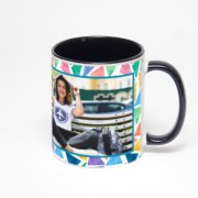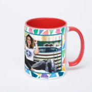 Керамическая кружка окрашенная синим внутри с синей ручкой с добавлением изображения в онлайн-редакторе макета.